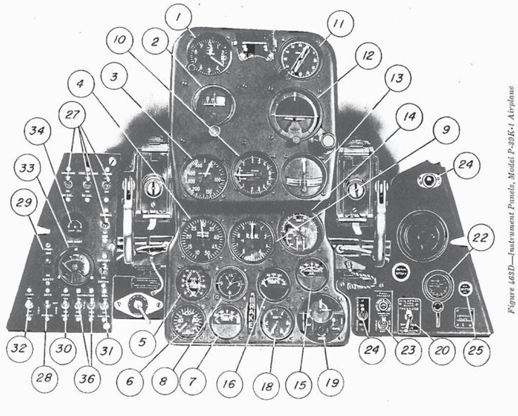 http://forum.aviaskins.com/attachmen...1&d=1734029235 Они расположены слева и справа от приборной доски. Эта картинка из книги "Bell P-39 Series Erection and Maintenance" (https://drive.google.com/file/d/1TVQ...ew?usp=sharing), рис. 463А, стр. 163. http://forum.aviaskins.com/attachmen...1&d=1733945347 Вот из мануала к P-39N, дёргалки есть слева и справа. Они там появились на P-39D-1, далее были на D-2, K-1, L-1... и до N-0 включительно, на N-1, N-5 и Q уже не было. http://forum.aviaskins.com/attachmen...1&d=1734127372 Все те мануалы я скачал ещё в декабре 2023 года, когда в том году делал первую версию сборки. Там нет нигде мануалов на P-400 или P-39D. На моей картинке именно пол кабины P-400 именно "первого контракта". Смотрим на топливный кран, он имеет 4 положения (off, left tank, right tank, res tank). Здесь нет 5 положения для подвесного танка "aux. tank". Снова смотрим книгу "Bell P-39..." на странице 134 и видим Цитата: