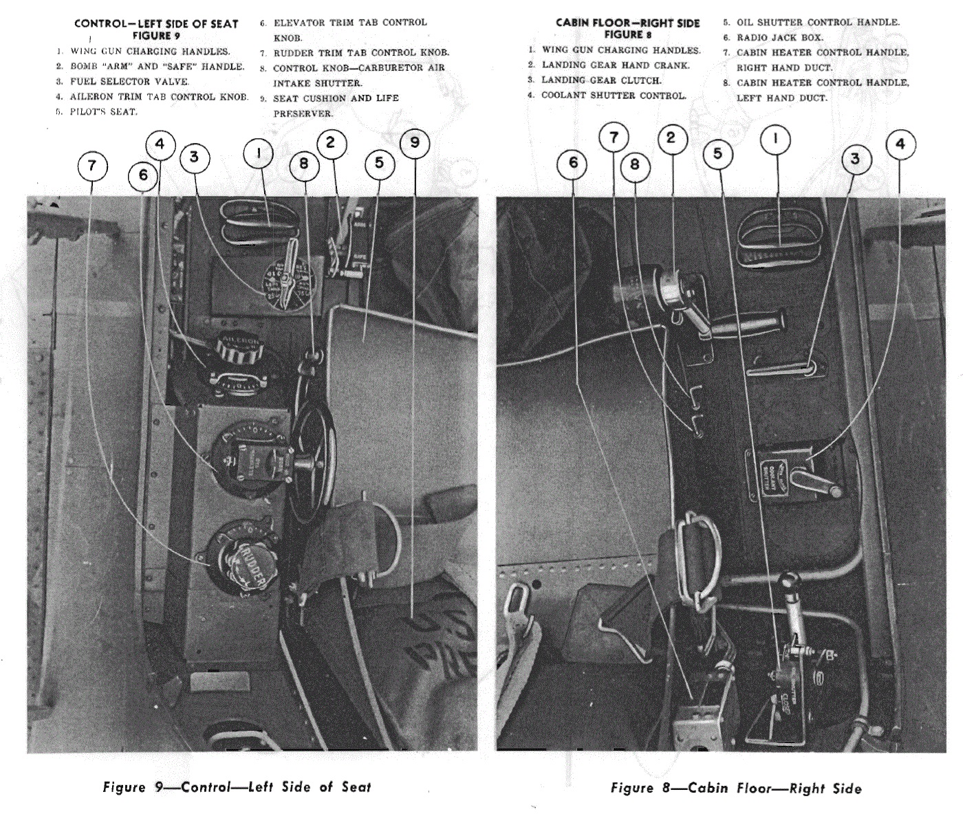 По тем мануалам фото из которых приводишь не видно двух рычагов под левым передним краем пилотской чашки 1 дергалка - взведение крыльевых 30кал пулеметов