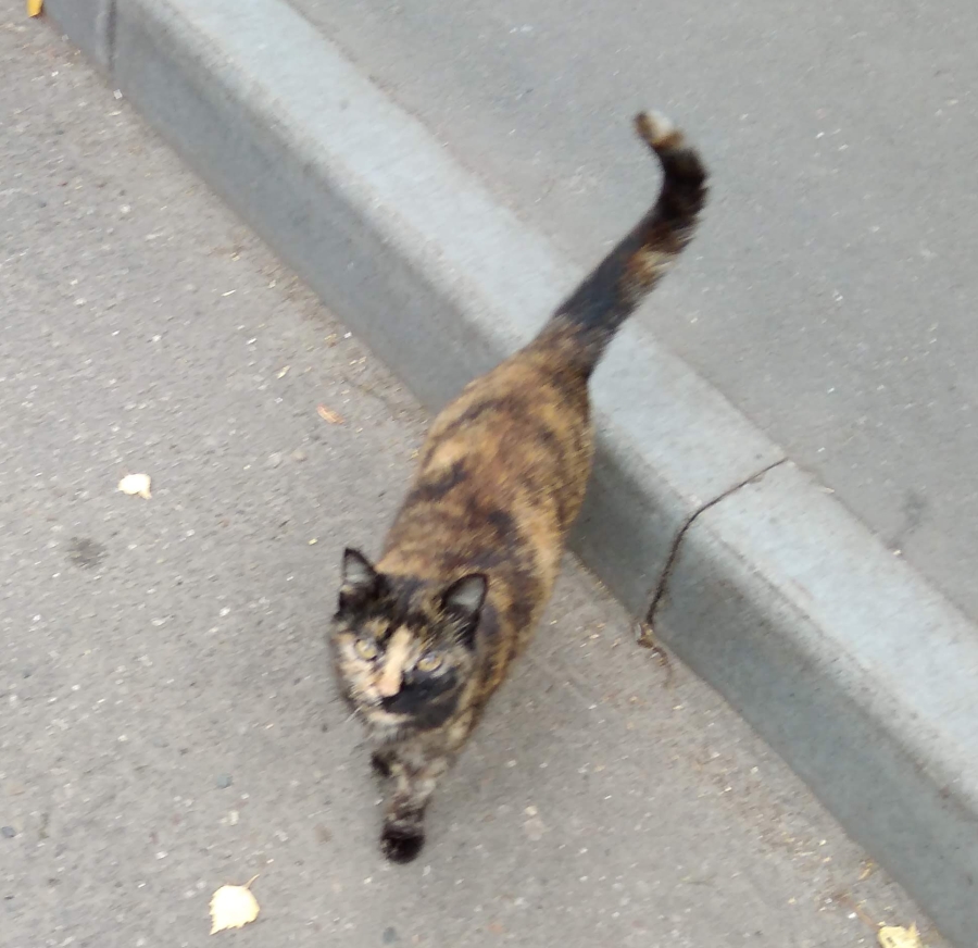 Котяра пару дней назад, во время утренней прогулки. Сидел на крыльце "Рыбной Лавки" и ждал открытия.