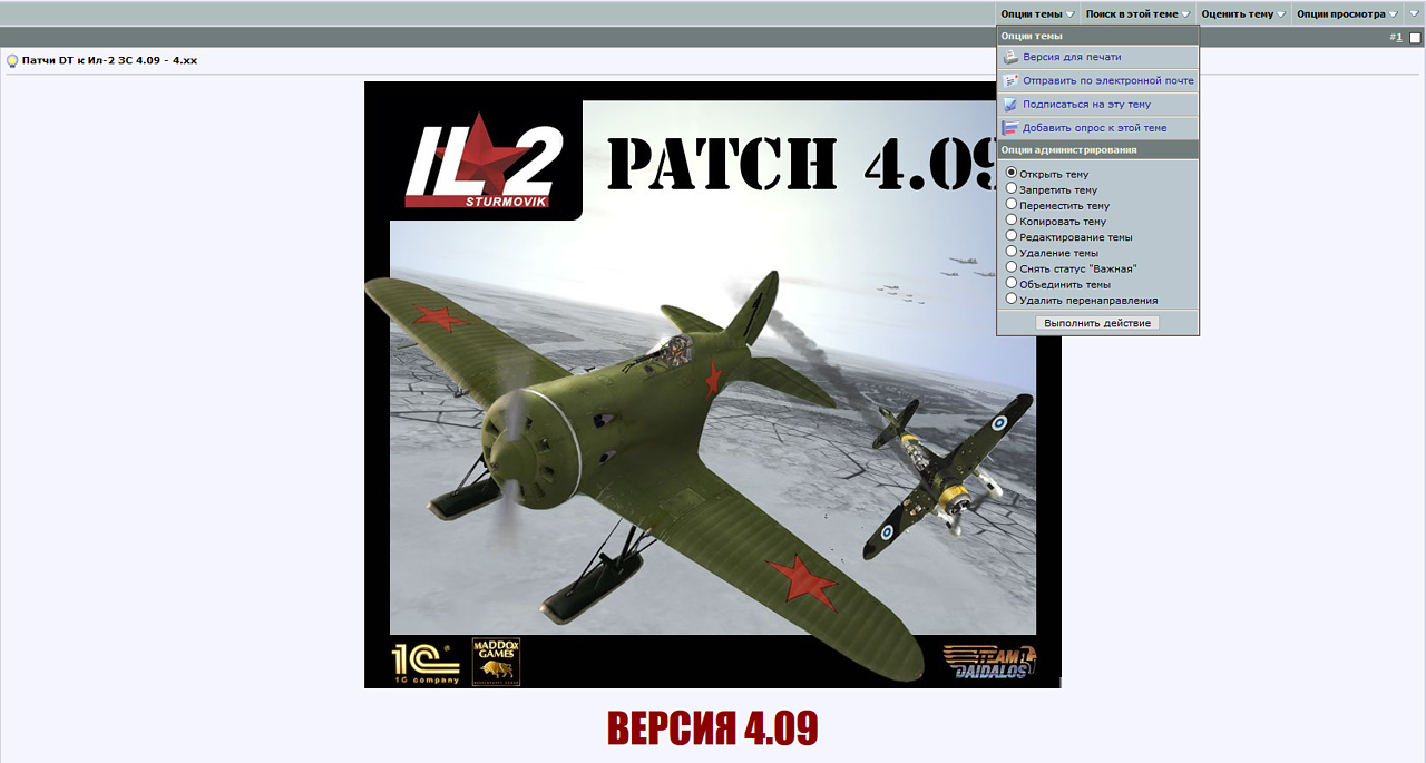 Но это всё лирика :rolleyes: Теперь есть отдельная тема, Патчи DT к Ил-2 ЗС 4.10 - 4.хх, которая 'пришпилена' и закрыта для сообщений, и тема Патчи DT к Ил-2 ЗС 4.10 - 4.хх. W.I.P. (эта вот), в которой можно обмениваться мнениями, соображениями, информацией и проч. Камрад Amigo, как вызвавшийся доброволем (ага, ага :D) назначен модератором раздела 'Обновления', что дает возможность открывать/закрывать тему для размещения очередной порции информации. Сложного в этом ничего нет: |