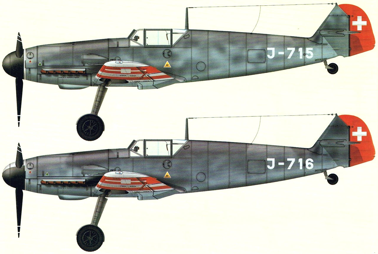 http://forum.aviaskins.com/attachmen...1&d=1548580483 http://forum.aviaskins.com/attachmen...1&d=1548580483 Me.109F-4 (зав.ном. 7197) был одним из двух немецких истребителей, которые 25 июля 1942 года совершили посадку на аэродроме Берн-Белп. Этот самолет пилотировал обер-ефрейтор Шарф. http://forum.aviaskins.com/attachmen...1&d=1548580483 http://forum.aviaskins.com/attachmen...1&d=1548580483 Вторым «фридрихом», приземлившимся 25 июля 1942 года на аэродроме Берн-Белп, был Me.109F-4 (зав.ном. 7605), управлял которым фельдфебель Мартин Филлинг. http://forum.aviaskins.com/attachmen...1&d=1548580483 Летом 1946 года истребители Me.109F-4 («белая 9» и «синяя 10») были официально переданы в состав воздушного копуса Швейцарии, где им были присвоены номера J-715 и J-716. Известно, что самолеты были перекрашены, но из-за отсутствия снимков мы можем только представить себе, как могли выглядеть швейцарские «фридрихи». |