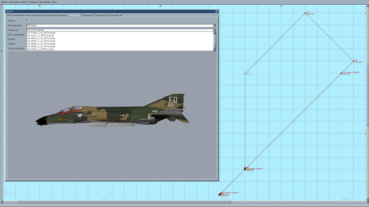 [15:49:30] INTERNAL ERROR: BmpLoad_Pal8() - Bitmap 'PaintSchemes/Skins/F-4D/F-4D_USMC_MF.bmp'Bad BMP Format! Но вот если перед запуском миссии зайти в настройки самолета, то оказывается, что шкурки в HD недоступны ... Мало того, если после этого вернуться в "толстый" редактор, то они пропадают и там! :eek: Ну и при запуске миссии крафты "одеваются" в дефолтные шкурки ... ... а в лог пишется та самая ошибка :DONT_KNOW: Что за? :I'm_thinking: |
