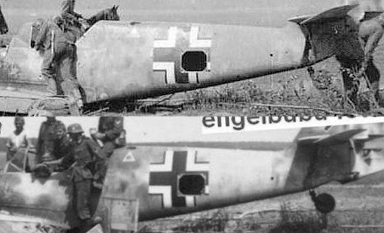 https://abload.de/img/ed32010_p43pknn.jpg На ней Голлоб сидит в кабине <<<, на нормального качества этой этой ч/б. фотке, я не вижу на этой машине тех самых разводов на бортах, которые можно увидеть на цветных фото, и самое интересное, я не вижу на ней жёлтой полосы на фюзеле. Я мог бы грешить на контрастность, или фото-фильтр, но тонкую кайму шеврона я вижу, белую, хоть и слитую кайму свастики, а так же различные мелочи и складки в одежде лётчика и техника. Рискну предположить, что это совсем новенькая машина, на которую уже нанесён шеврон, а полосы нет. Вот эта полоса, (вернее её отсутствие здесь), которая будет расположена в несвойственном для подразделения месте, не даёт мне сложить всё в одну картину. Могу только предположить, что код мог остаться только на крыльях |