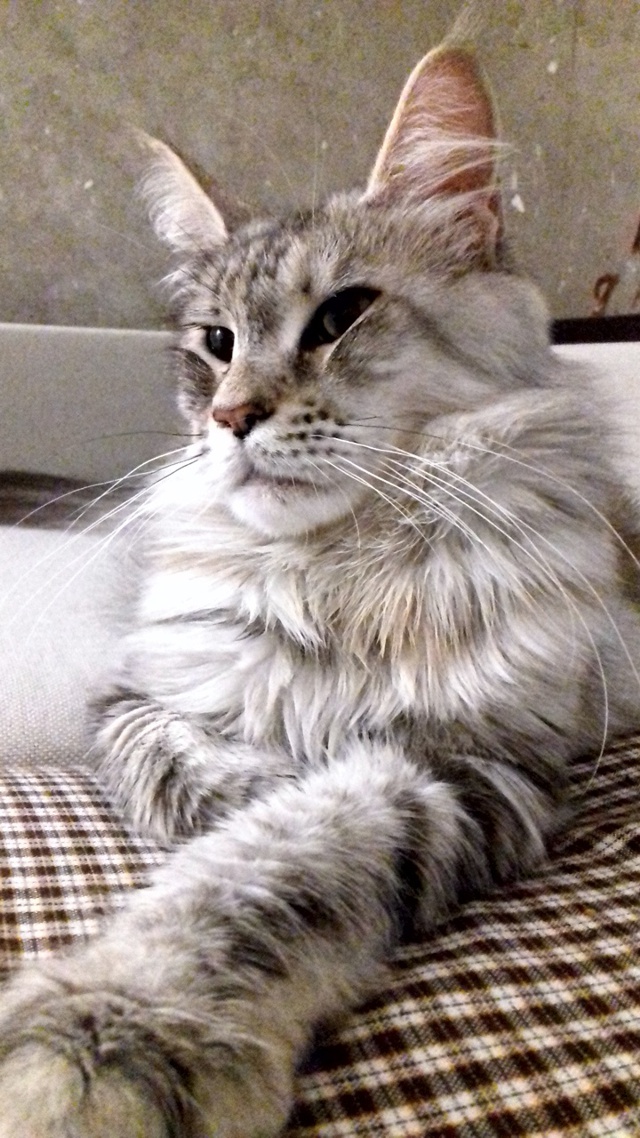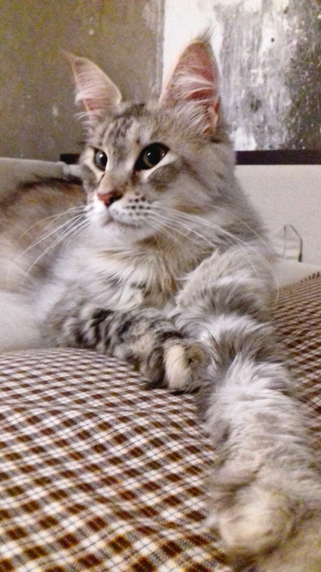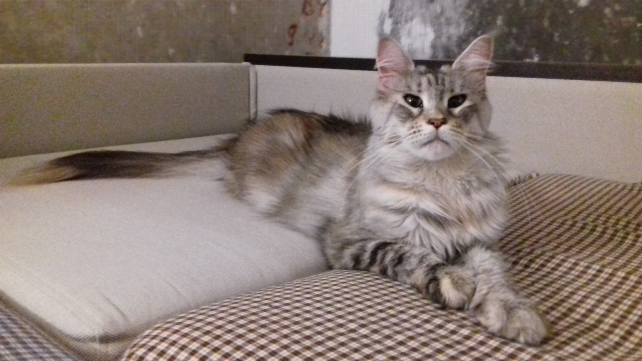 Официально Monterini Crepe Suzette, Сюзетта то есть. А так Сьюзи, понятное дело :rolleyes: Настоящий мейн-кун :ok: У неё непростая судьба :ups: Она из питомника. Всё было хорошо, участвовала в выставках, получала дипломы :good: Потом, понятное дело, её повязали. Но беременность получилась крайне неудачной, она чуть не погибла, её прооперировали и, в итоге стерилизовали :DONT_KNOW: Ну и началось ... Она ведь в питомнике обреталась, и 'старшие' дамы её буквально начали гнобить из-за того, что она 'не такая' :( Вот хозяйка и озаботилась поисками тех, кто бы смог позаботиться о Сьюзи ... а тут мы :rolleyes: Вообще-то, мне кумовья предложили типа 'подарка' к Новому году - они свою котейку (британская короткошерстная) вязать собрались, впервые, ну и присматривают для будущего потомства будущих хозяев. Я у домашних поинтересовался, pourquoi pas? Ну, стали искать, что за порода, да как выглядят, да что за характер ... ну и попутно поглядывали на альтернативу, так сказать :rolleyes: А тут - она ... Ну и, вот ...