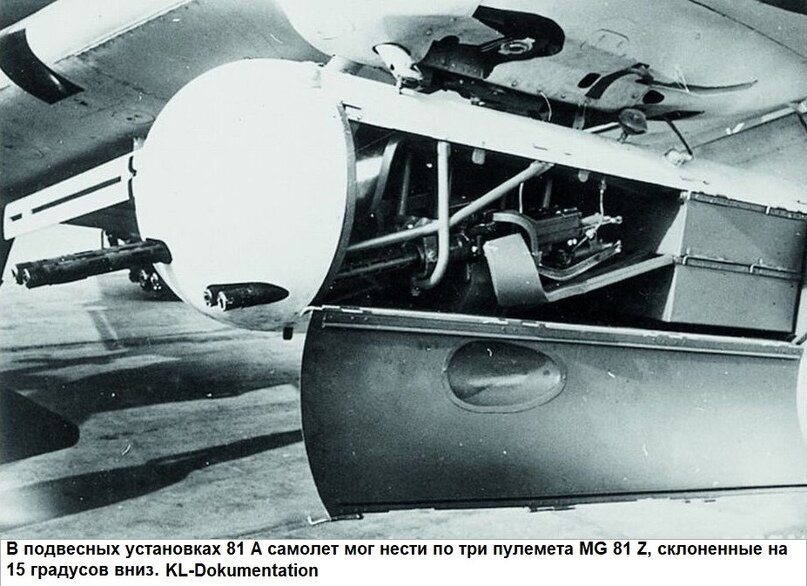 https://avatars.dzeninfra.ru/get-zen...6c3/scale_2400 https://avatars.dzeninfra.ru/get-zen...6aa/scale_2400 Waffenbehälter 81A/В, в которых устанавливались несколько пулеметов MG.81Z. Контейнеры подвешивались под крыло и при штурмовках, создавая очень высокую плотность огня. А теперь арифметика 3х 3200 = 9600 выстрелов в минуту из каждой канистры. 2 канистры под плоскостями 9600х2=19200. Непатриотично получается но аппарат 81Z превзошел ШКАС по весу и надежности |