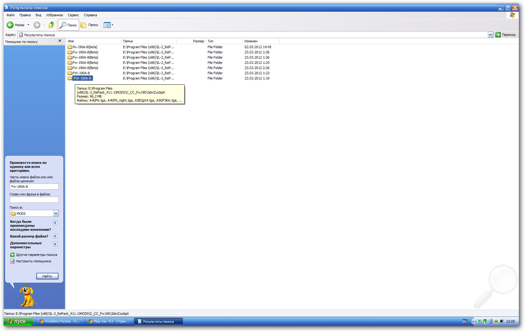 Лечится легко, заходим в папку MODS и жмем поиск, в строку поиска вбиваем Fw-190A8 на скрине видно как, выдает ряд папок, выделенную папку или минусуем как на картинке, или удаляем, и имеем нормальный кокпит.