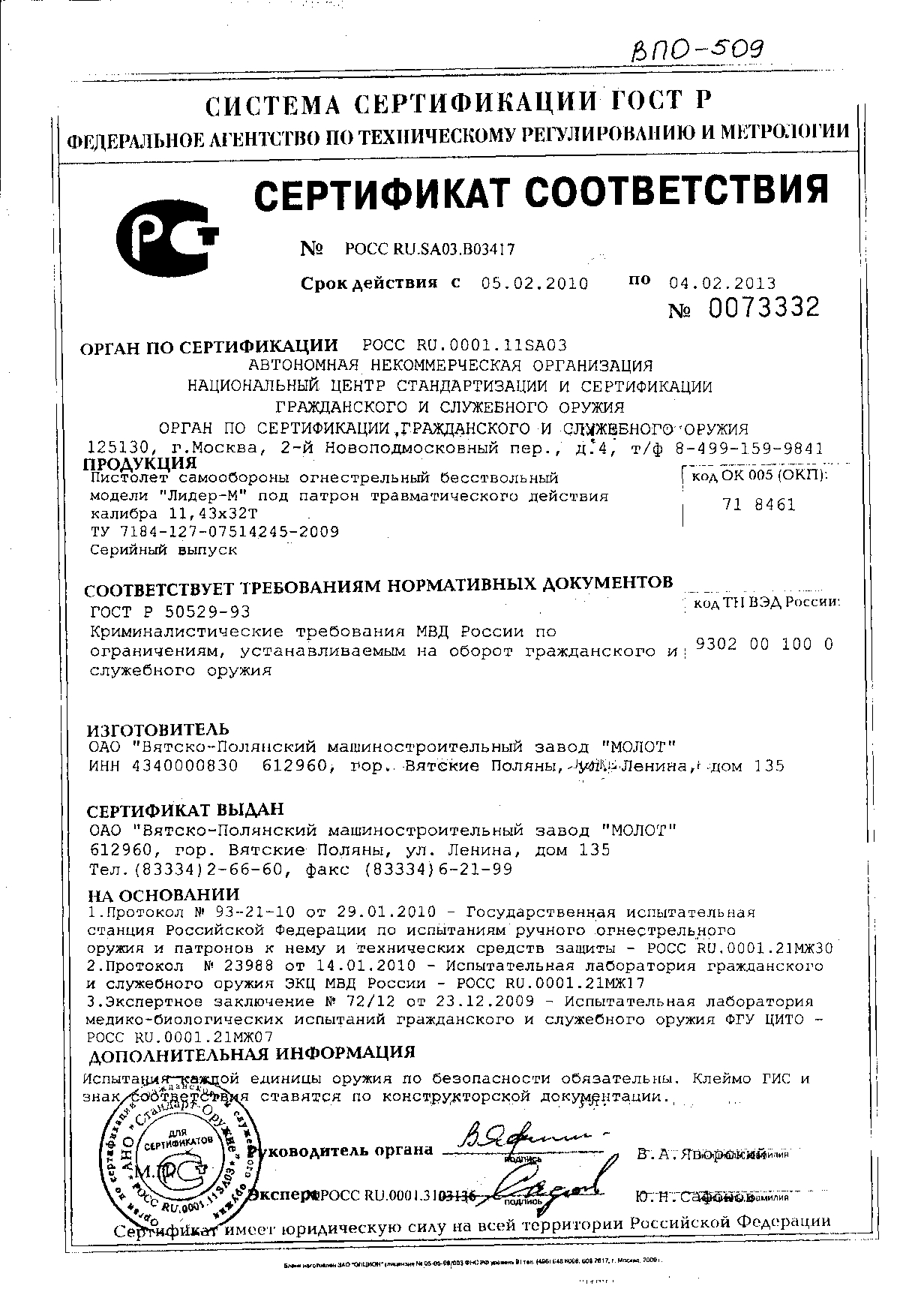 На фото МР-81, а вы видимо говорите про Лидер ТТ и Лидер М. Это вообще бесствольные пистолеты (см сертификат во вложении).