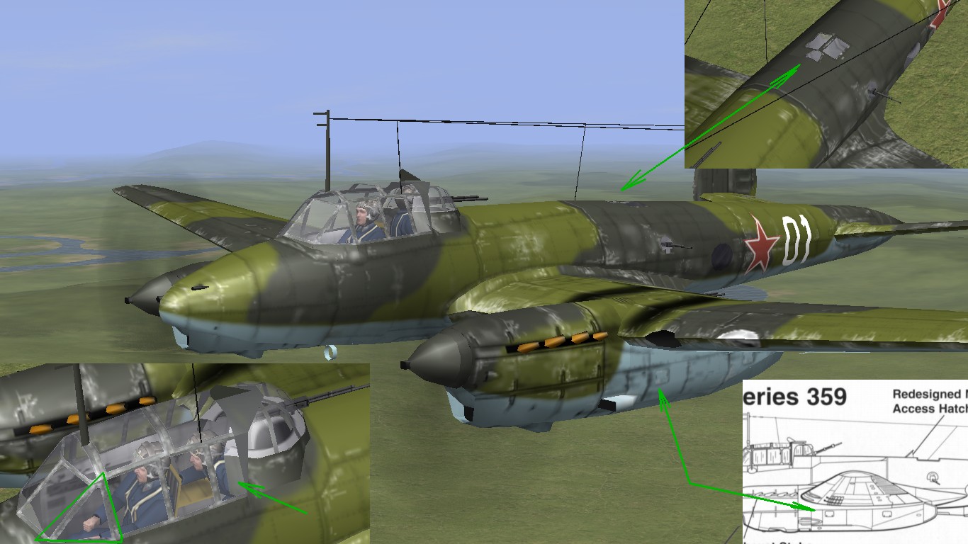 Краткое описание что мод делает: добавляет в игру два новых самолета: Пе-2 265-й и 402-ой серии. Большое количество исправлений модели, исправление приборов, прицелов, добавление нового вооружения (авиационные гранаты) и др. Мод для версии игры
