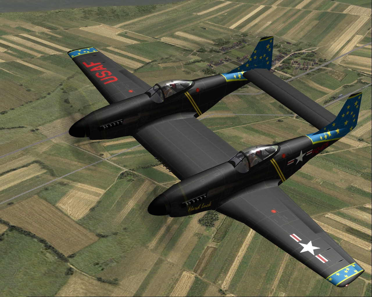 Крыльевые пулемёты работать и не будут.Они там по умолчанию не должно и быть.Батарея пулемётов стоят между фюзеляжами.Предлагаю обновить саму модель на более оригинальную копированием папки 3do из летаба F-82F в P-82,предварительно переименовав как нужно.В hier.him удалить или закоментировать :