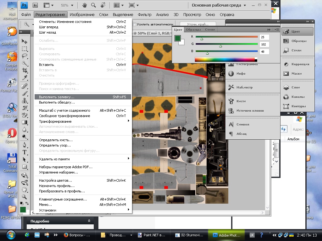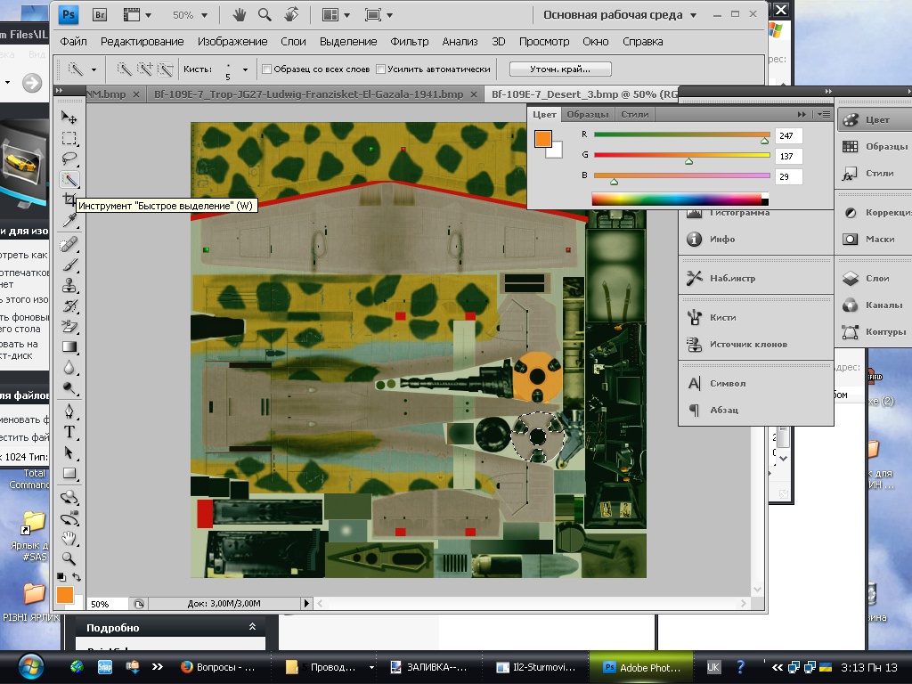 Пока ковырял значки, зацепил и скины - как выглядят - на картинках вверху., хотелось бы чуть сказать как на скорую руку подкрасить скин, если не устраивает цвет: в фотошопе использую волшебную палочку для выделения нужных областей, так же, быстрое выделение., потом делаю заливку скина или выделенной области каким либо цветом с 10 проц. прозрачностью варьируя мягкий, жёсткий цвета, затемнение и т.д., можно в режиме РГБ подобрать цвет от другого скина по вкусу., иногда всё же приходиться потом покрывать и заливкой то зелёного, то оранжевого цветов что бы придать нужный одтенок скину., заливать приходиться по несколько раз для нужного эффекта. Это так - типа подправляю на свой вкус и расцветку в стиле: "а мне так нравиться". Я никаким боком не скинодел - просто баловство., скинов кубометров лежат по сайтах, но бывает что скин в общем нравиться, но местами хочеться подправить. Для тех кто сам не рысует скины(как я) прикрепил картинки как подправить/переделать (цветовую гамму для себя по быстрому) любимый скин. Может кому пригодиться мой маленький опыт.