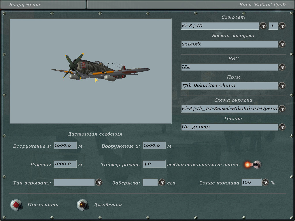 Вот так как выше прописано - всё становиться на места., правда ракеты немного в крыло залазяют, но это терпимо., можно конечно прописать пилоны от Ки-100 и ракеты будут нормалней проявляться, но это нужно уже ковырять планер и хиер.хим - это пока что не по силам, вернее не пытался поковырять. Просьба к модераторам: пусть повисит тут в моём посте текст прописки вооружения, может кому то кто будет ковыряться в классах из начинающих польза будет, хоть немного., очень мало информации(разжёванной) по классам. Особо благодарен Лакоте за пояснения на Запасном и вообще - что поддерживает советом всех кто прибегает на звон бубна. Так же благодарность Асуре за участливость к ошибающимся(это я о себе).