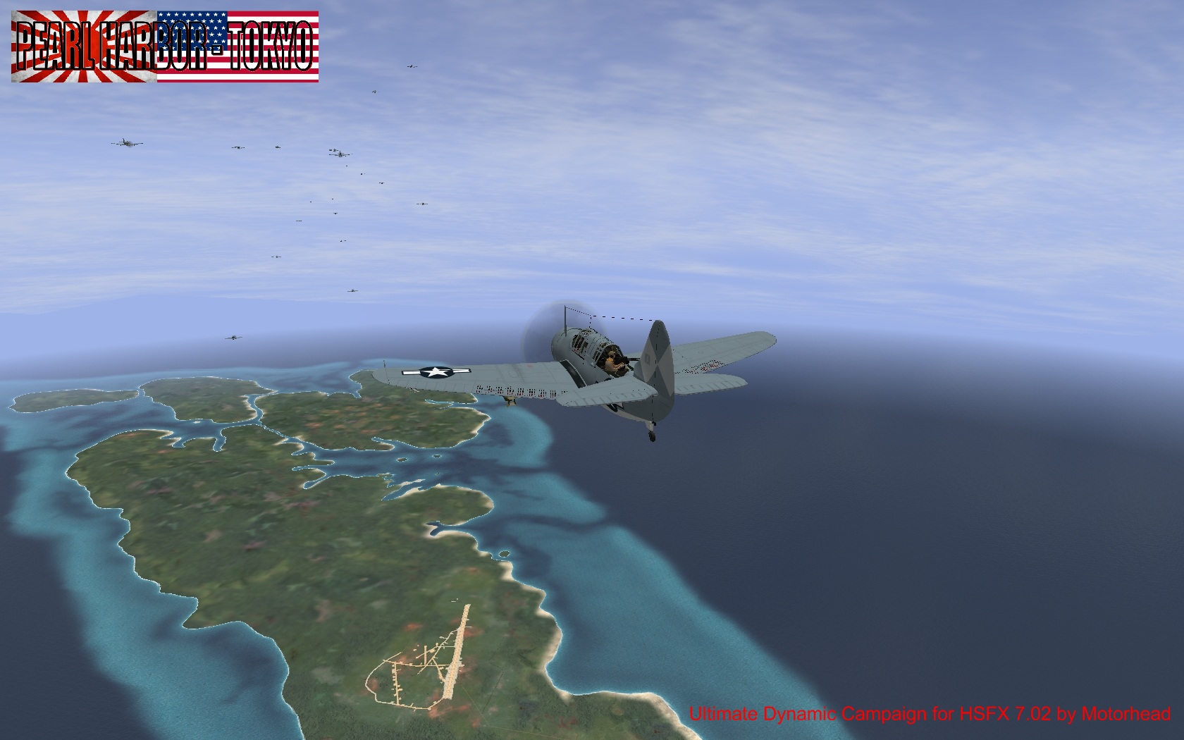 «Перл Харбор – Токио» это полная переделка прошлогодней кампании «Пацифик», главная суть которой в переводе с Ультрапака на HSFX 7.02. Почему я решил перевести кампанию на новый модпак? Ультрапак устарел, он базируется на слишком старой версии Ил-2, и насколько я знаю, разработчики его забросили. Развития не предвидится. А вот HSFX 7.02 основан на свежей версии Ил-2, в нем почти идеальный набор самолетов и карт для Тихого Океана (добавлять потребовалось по минимуму), и еще в нем визуальные эффекты из 4.12, которые лично мне ну очень нравятся))