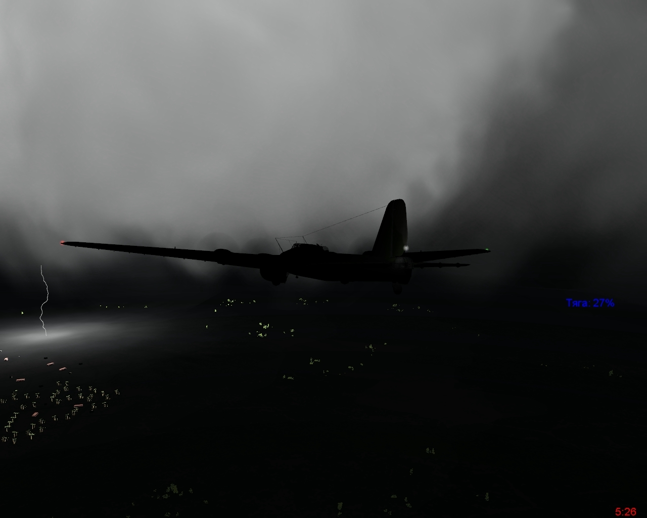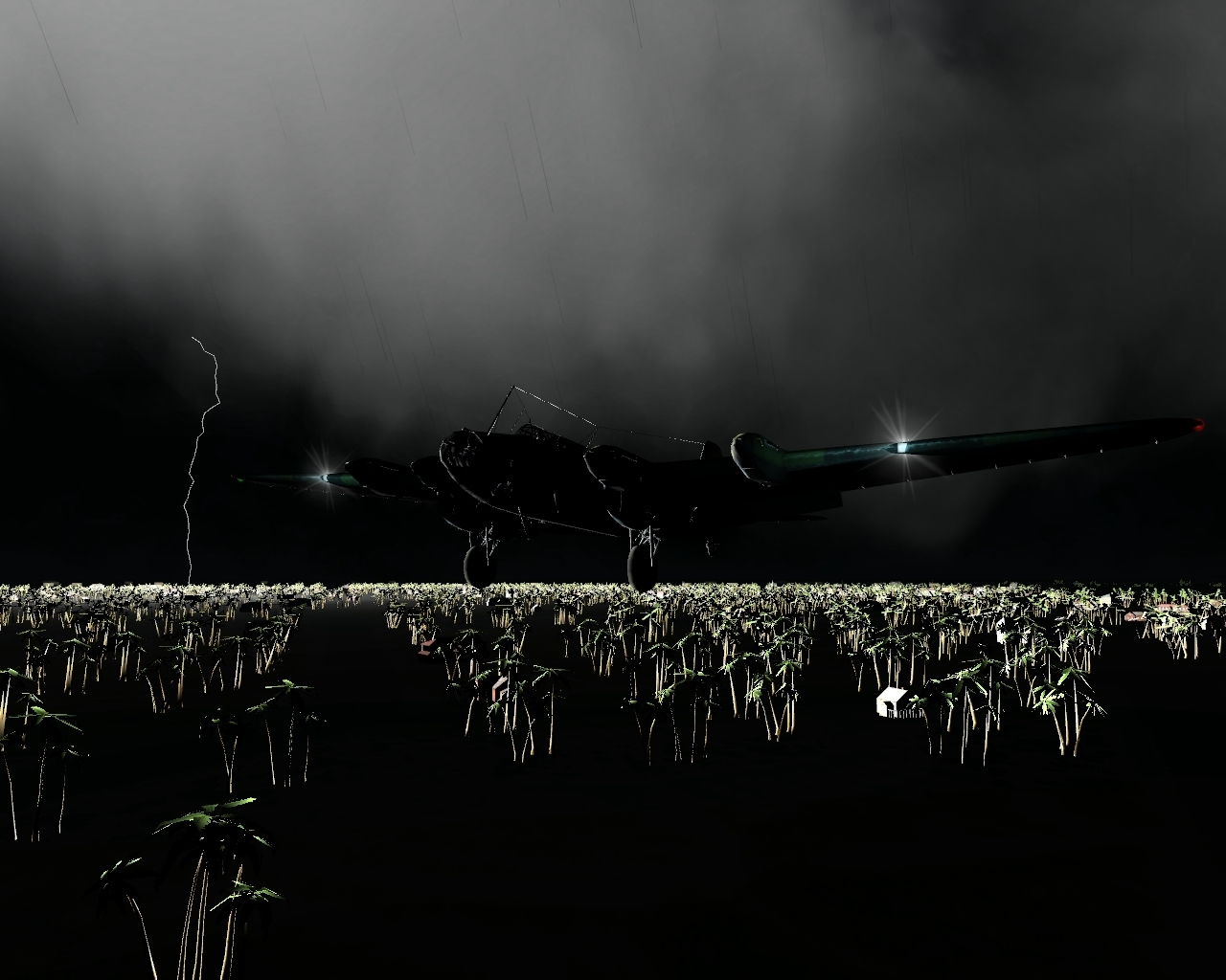 Хотел усложнить и добавил грозу. Оказалось, что так даже лучше - молнии освещают округу.