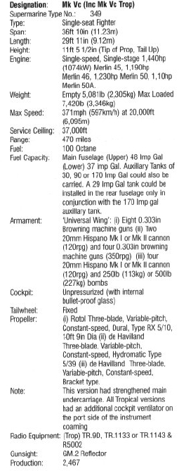 Потом меня заинтерисовало вооружение и вот, что я нагуглил по поводу Supermarine Spitfire Mk Vc.....