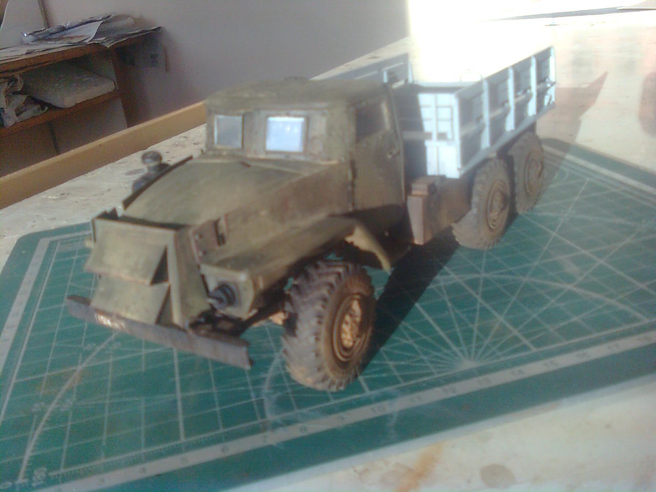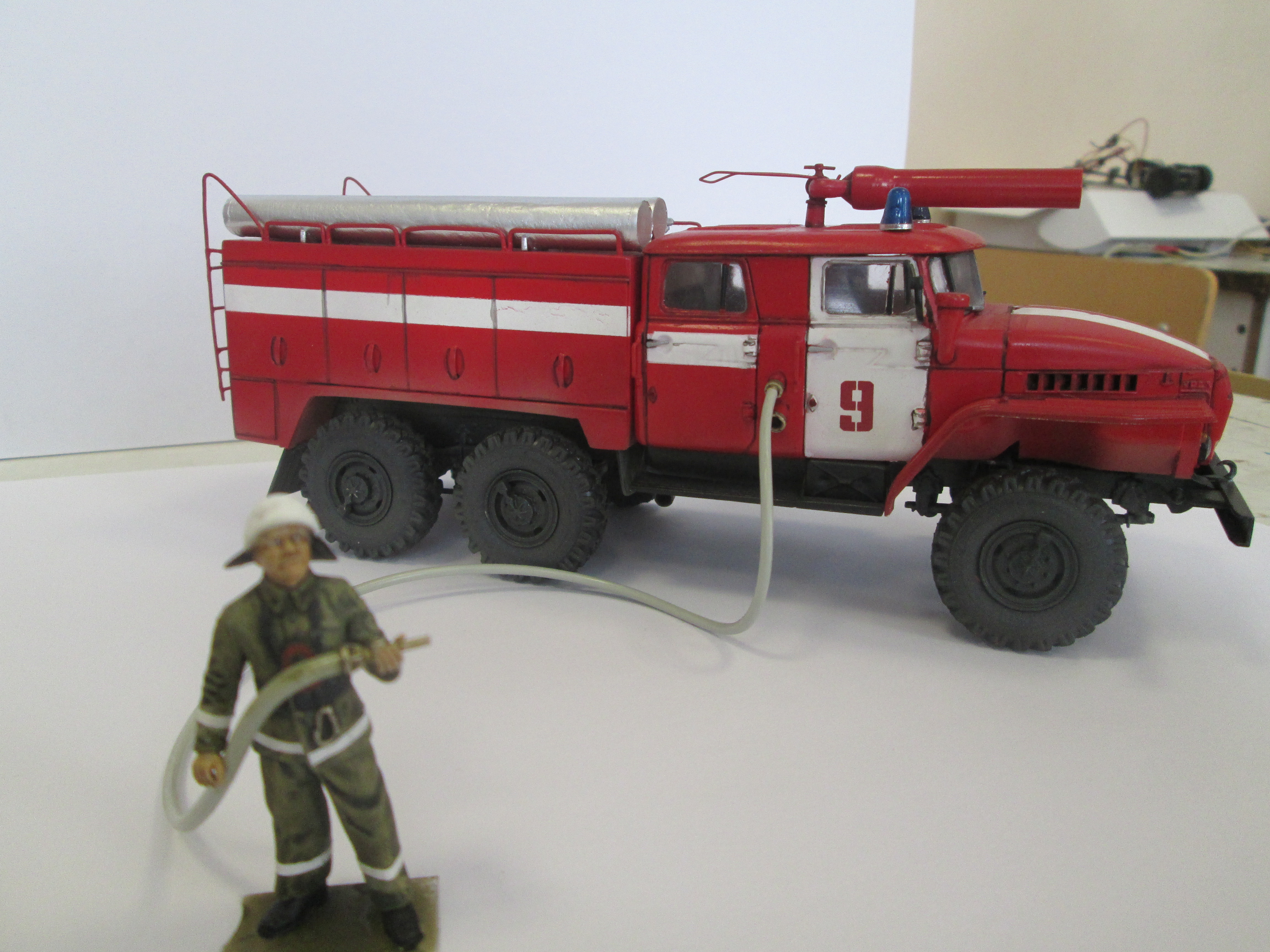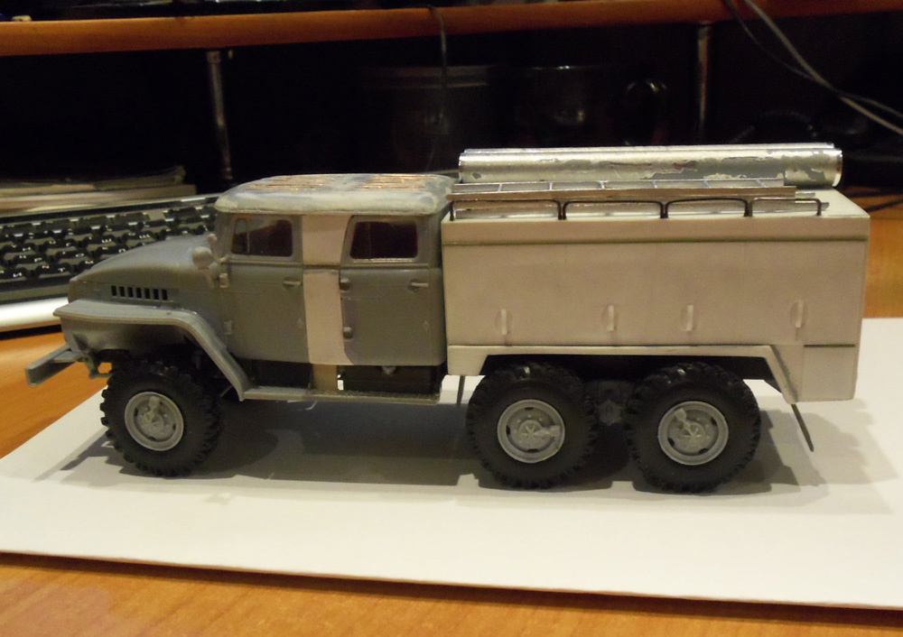 Не сложилась у детей дружба с ИСМовскими Уралами. Из 2-х «Градов» и 2-х Уралов, собрали только один БМ-21. Так из обломков одного Урала я сделал пожарку , а из другого сейчас делаю бронированный Урал. Что делать с оставшимся «Градом» пока не придумал.