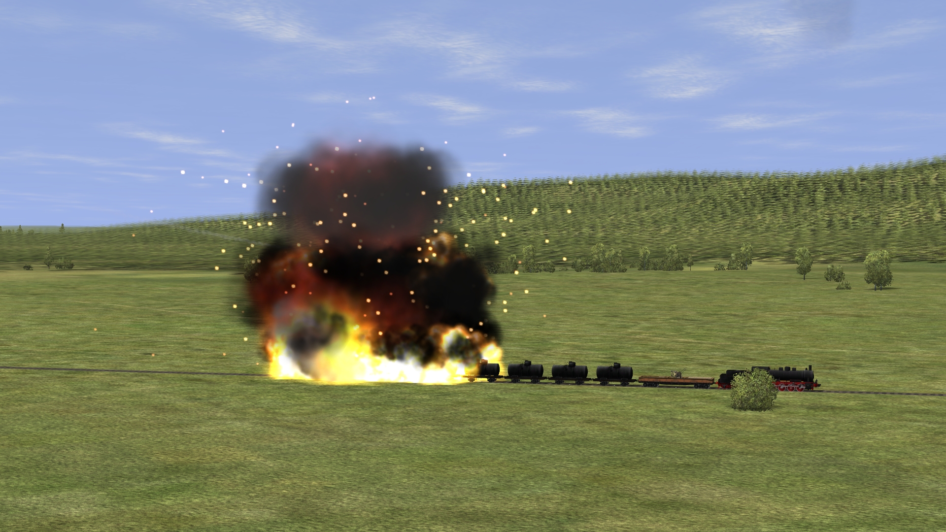 - пассажирский, платформы без орудий , товарняк, но только в топливотоварном составе от товарняка будет салют, искры никак... ну и ладно;