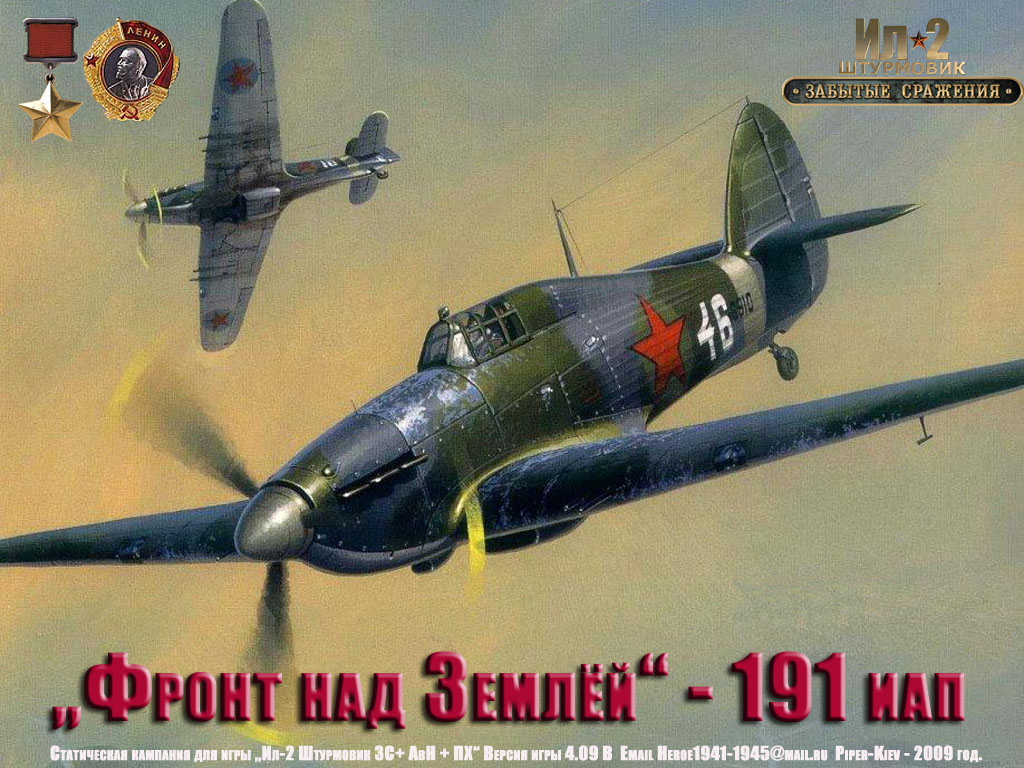 Первая кампания называется «ФРОНТ НАД ЗЕМЛЕЙ» и посвящена советским летчикам-истребителям 191-го ИАП ПВО, встретивших ВОВ под Ленинградом. Кампания создана по мотивам книги летчика-истребителя, ГСС, генерал-майора авиации Н.Ф.Кузнецова «Фронт над землей» - книга прилагается. Скины к кампании выставлены на файлообменнике – ссылка