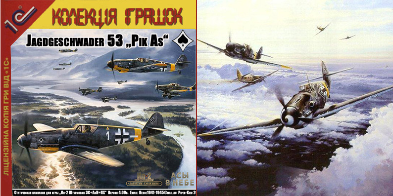 Крайняя, из имеющихся у меня кампаний Сергея Милославского (Piper-Kiev) – она называется «JG 53 Pik As» и посвящена немецким летчикам-истребителям, воевавшим в составе авиаэскадры JG-53 на Восточном фронте, в Тунисе, Италии и Венгрии с 1941 по 1945 г.г. Кампания имеет две версии - для V 4.09 и для V 4.10, эти версии немного отличаются друг от друга и имеют разные скинпаки, но обе эти версии хорошо идут в V 4.13.3. Скинпаки обеих версий кампании выставлены в общей папке на файлообменнике – ссылка