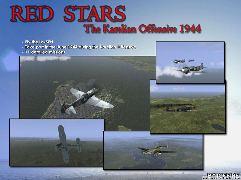 1. Первая кампания имеет оригинальное название «Read Stars – Karelian Offensive 1944» (в переводе «Красные Звезды. Карельское наступление 1944 года»). Автор перевода – наш коллега SWORD. Кампания посвящена советским летчикам-истребителям, летавшим на ЛА-5ФН в составе 3-его ГИАП КБФ и защищавшим небо Ленинграда в 1944 году.