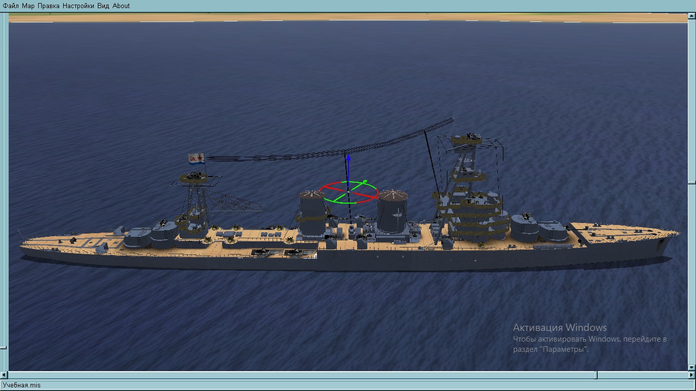 Тени под башнями ГК, передней и задней надстройками.