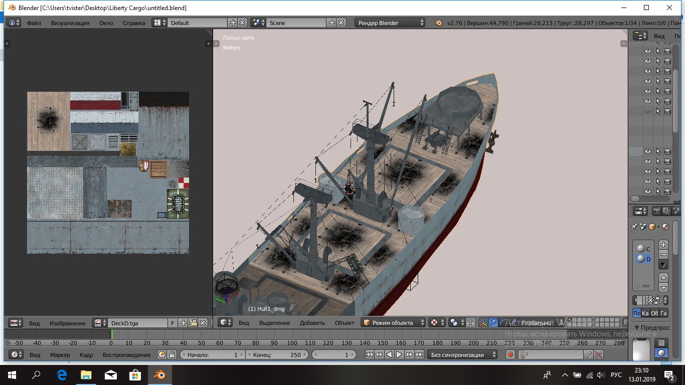 Я вижу два пути решения проблемы: первый, создание чего то вроде оверлеев с текстурой повреждения, но это приведет к росту веса модели. И второй вариант, собрать модель воедино, раскроить её и создать развертку уже затекстурированной модели. Второй вариант сложнее, затратнее по времени и неизвестно как это отразится на виде модели. Но он дает возможность создать более детальную модель повреждений. Может быть кто то знает как решить эту проблему по другому?