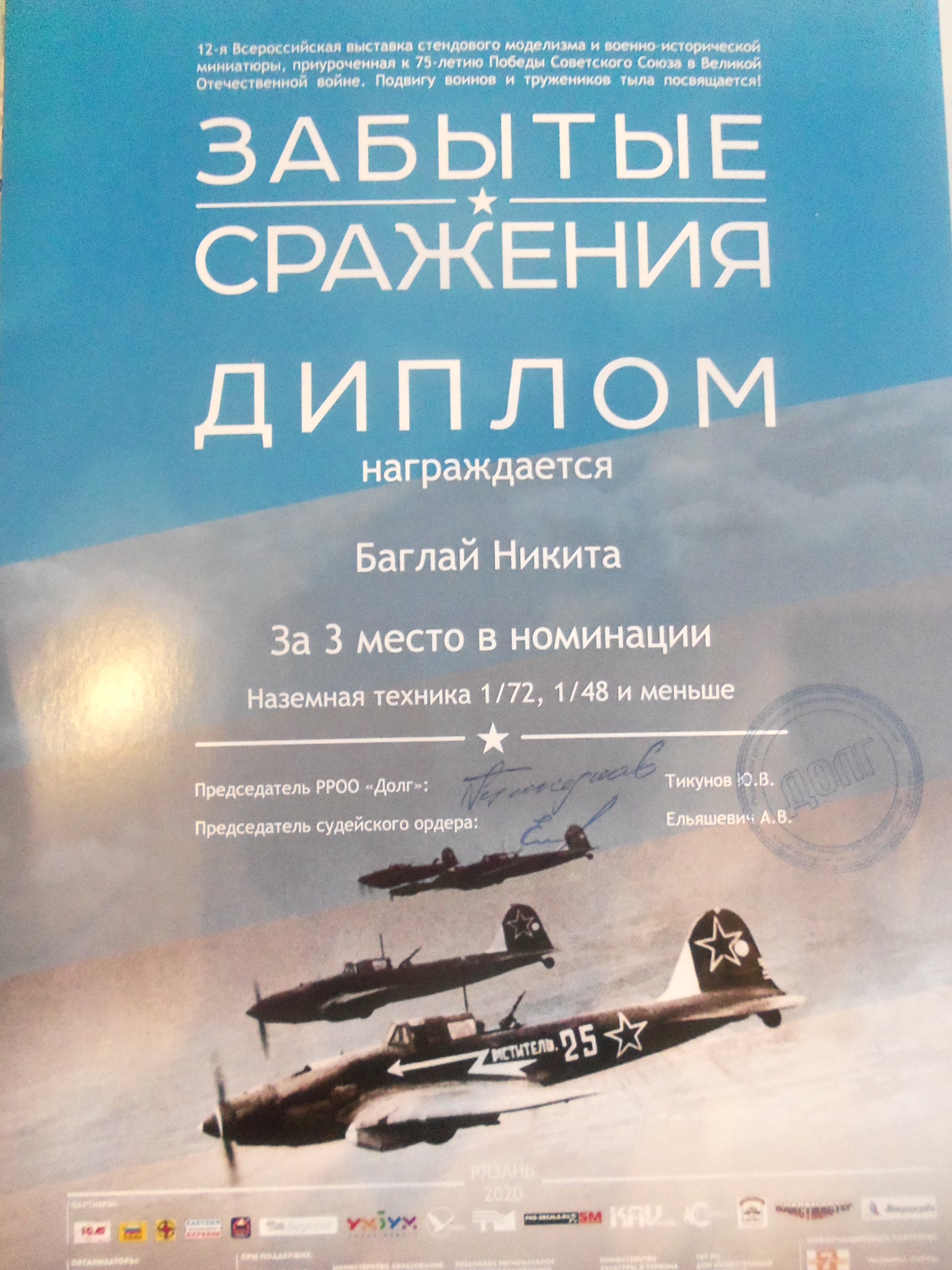 Сегодня получил детские призы и дипломы с выставки "Забытые сражения", что прошла в Рязани. Большое спасибо Юрию Тикунову , Вадиму Муляру и всем кто продвигает моделизм в нашей стране!