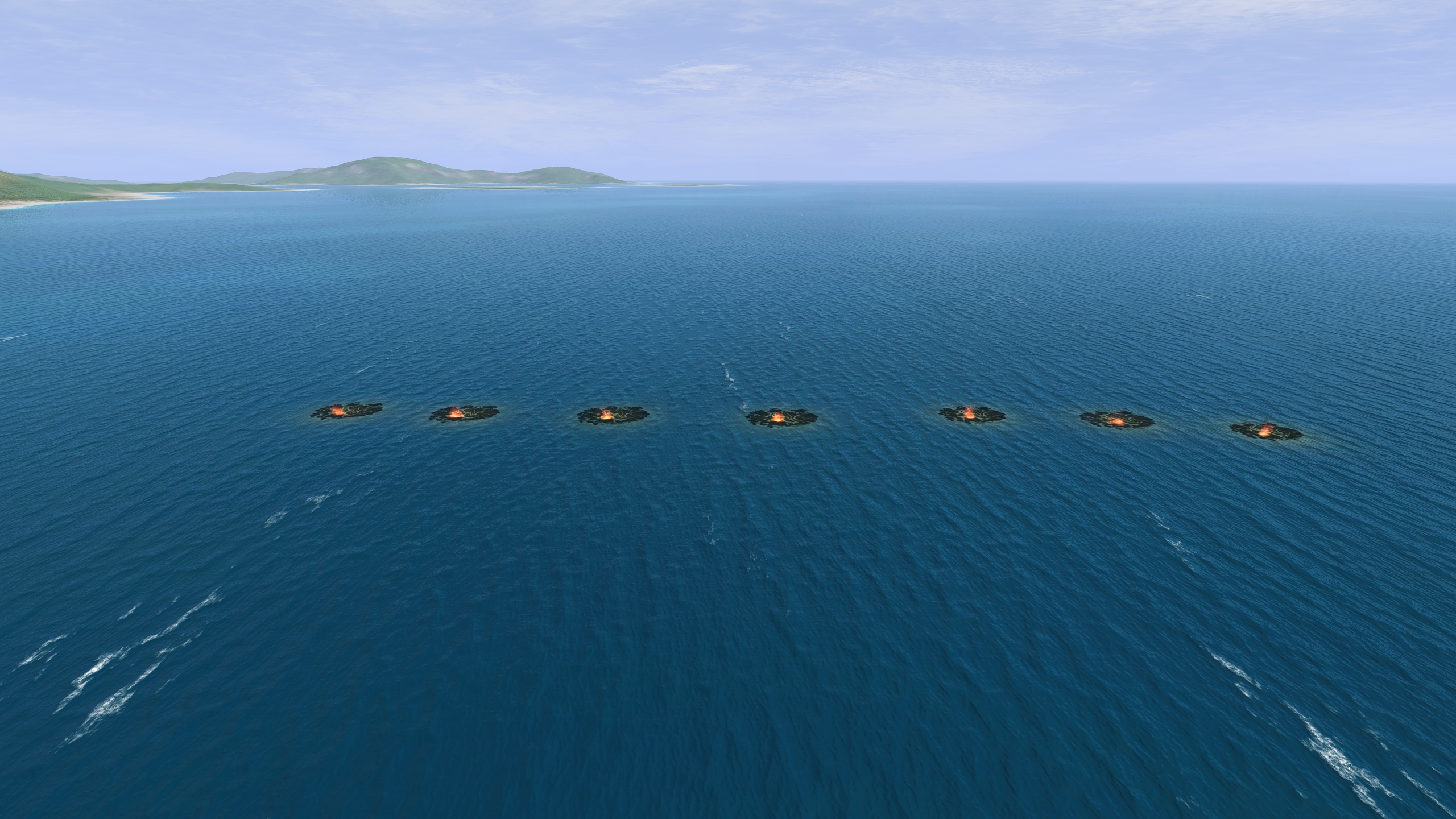 В моде, как писал выше, очень не устраивало появления только огня после затопления подводных подлодок скрины 2, 3 и грешил на себя - типа что-то не сделал-недоделал, а оказалось, что такая же фигня и в дефаулте скрин 4, ну это просто годами Ил не включал с дефаултными эффектами и уже забыл как они выглядят. Посмотрел "недоделанный" разрабами код, ну и он естественно не по мне, а значит так и будет на всех подводных подлодках скрин 5, но есть и бальзам на душу - по времени на скринах 2 и 3 можно представить с какой скоростью растут пятна нефтегорючки.