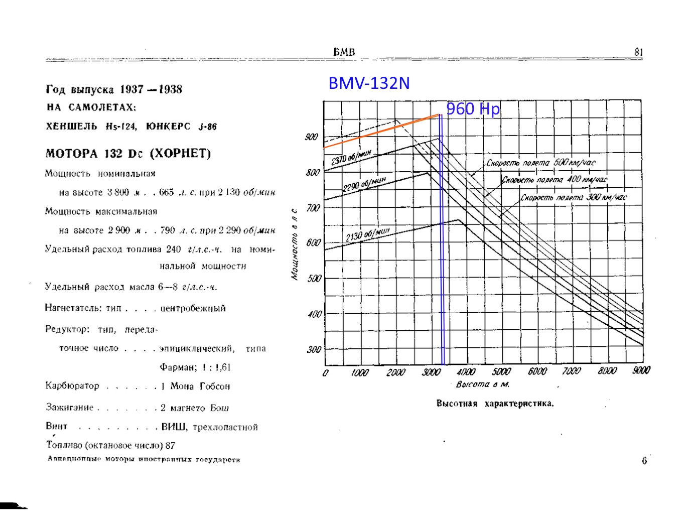 Взял график БМВ-132Дс и прочертил линию мощности -