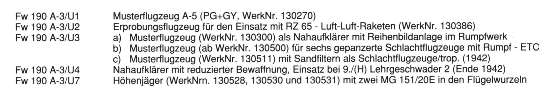 Fw 190A-3/U1 - only one built, experimental plane (W.Nr. 130270, PG+GY) with engine mount extended for 15 cm, which was used as a prototype of the A-5 version