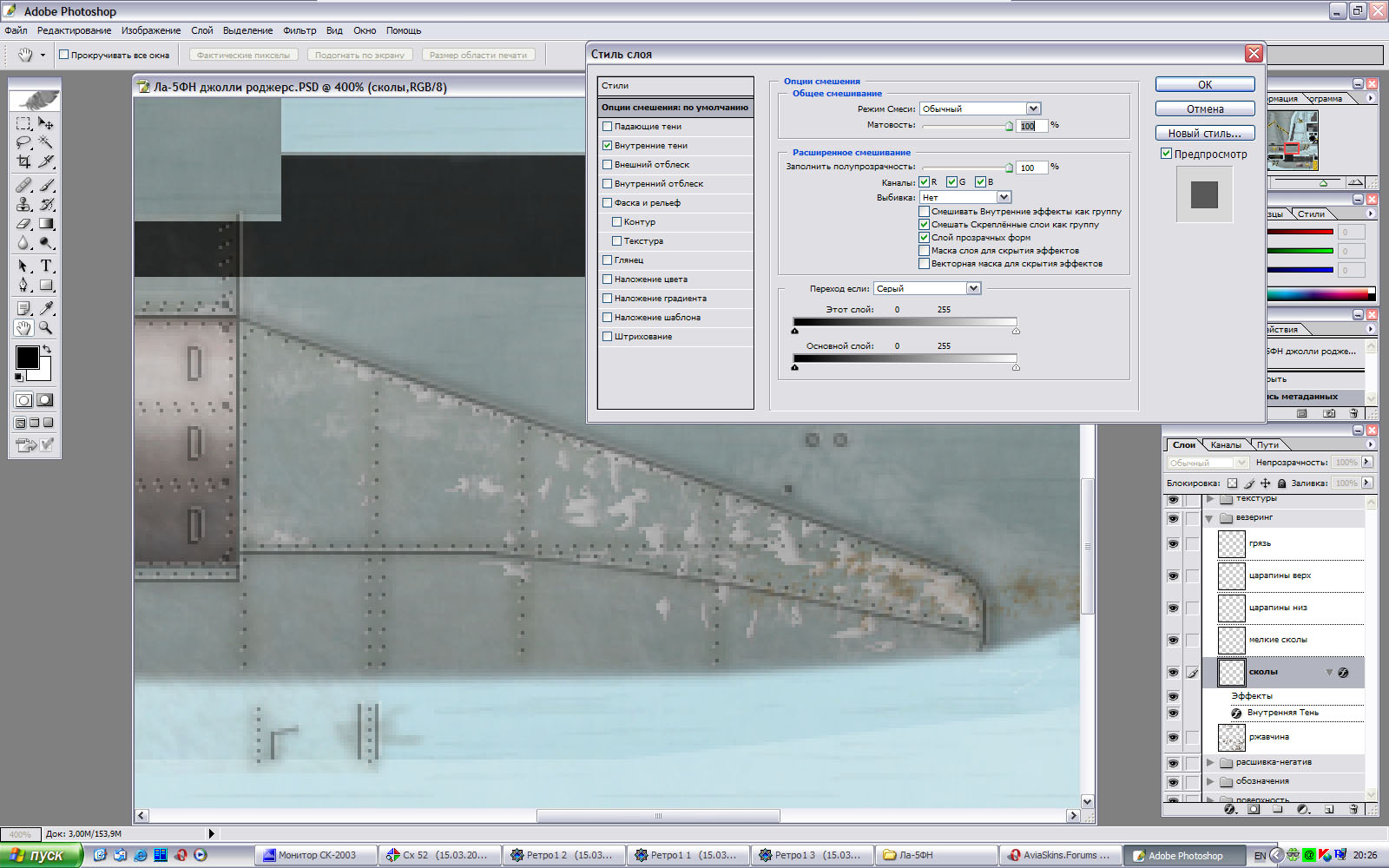 Собственно все. Далее можно поиграться прозрачностью слоя, чтобы сколы не слишком бросались в глаза и выглядели более натурально