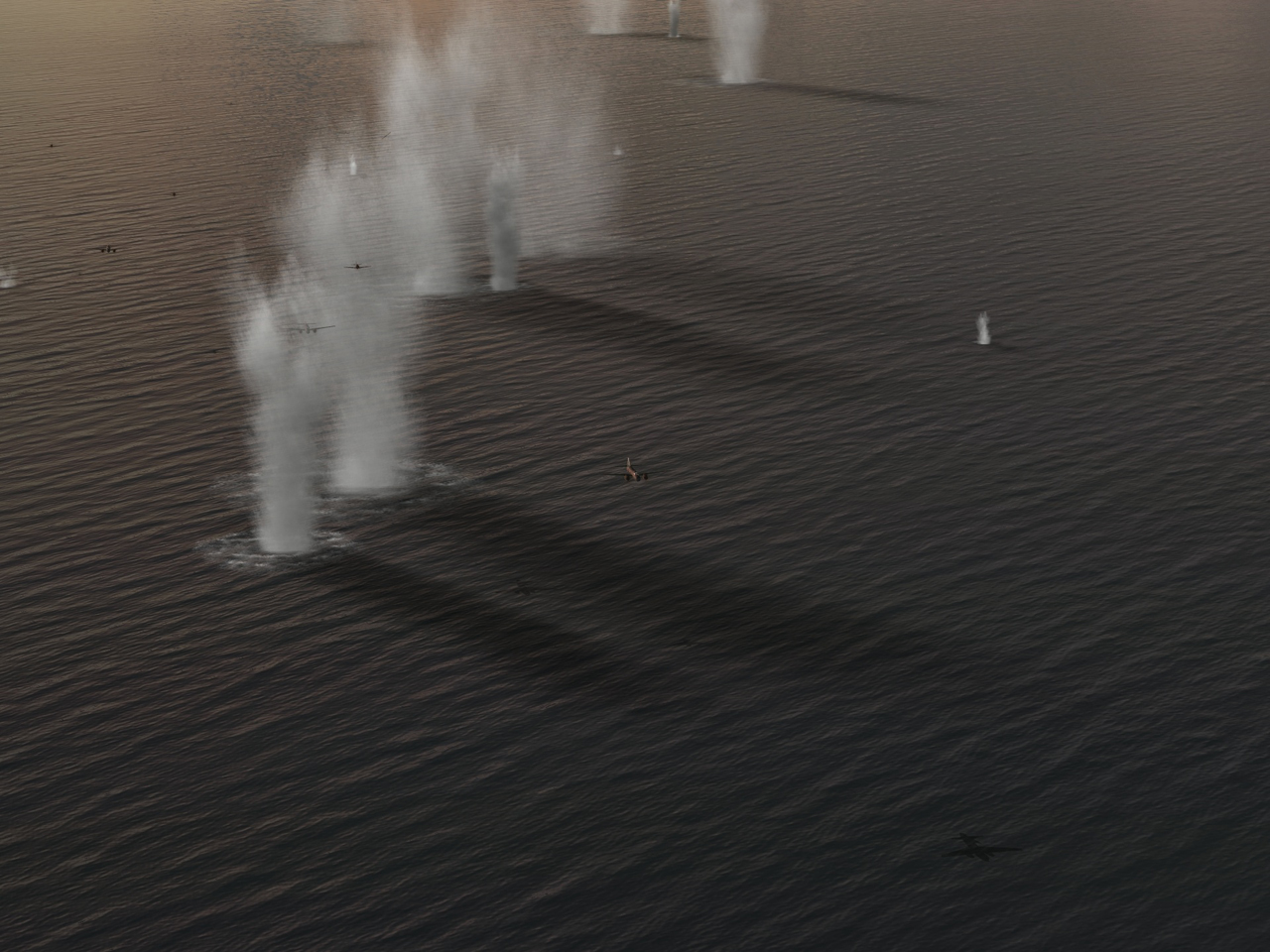 Для достижения лучшей естественности эффектов взрывов на воде пришлось объединить два эффекта , а именно:
