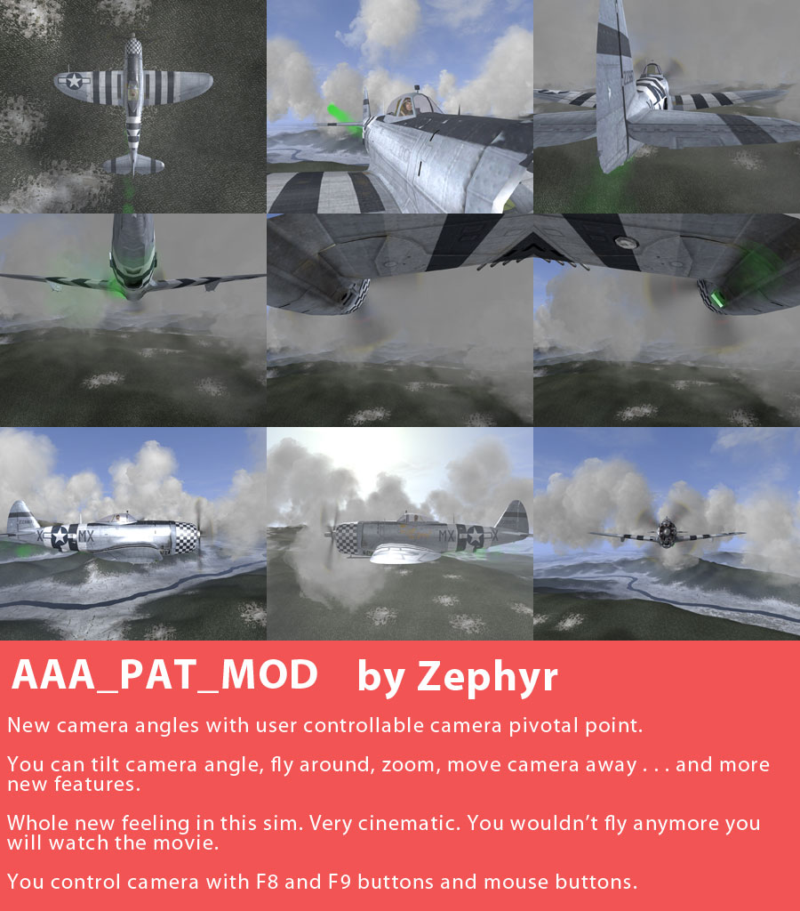 Краткое описание что мод делает: предоставляет расширенные возможности управления камерой вокруг самолета. Добавляет пилотажные дымы разных цветов.