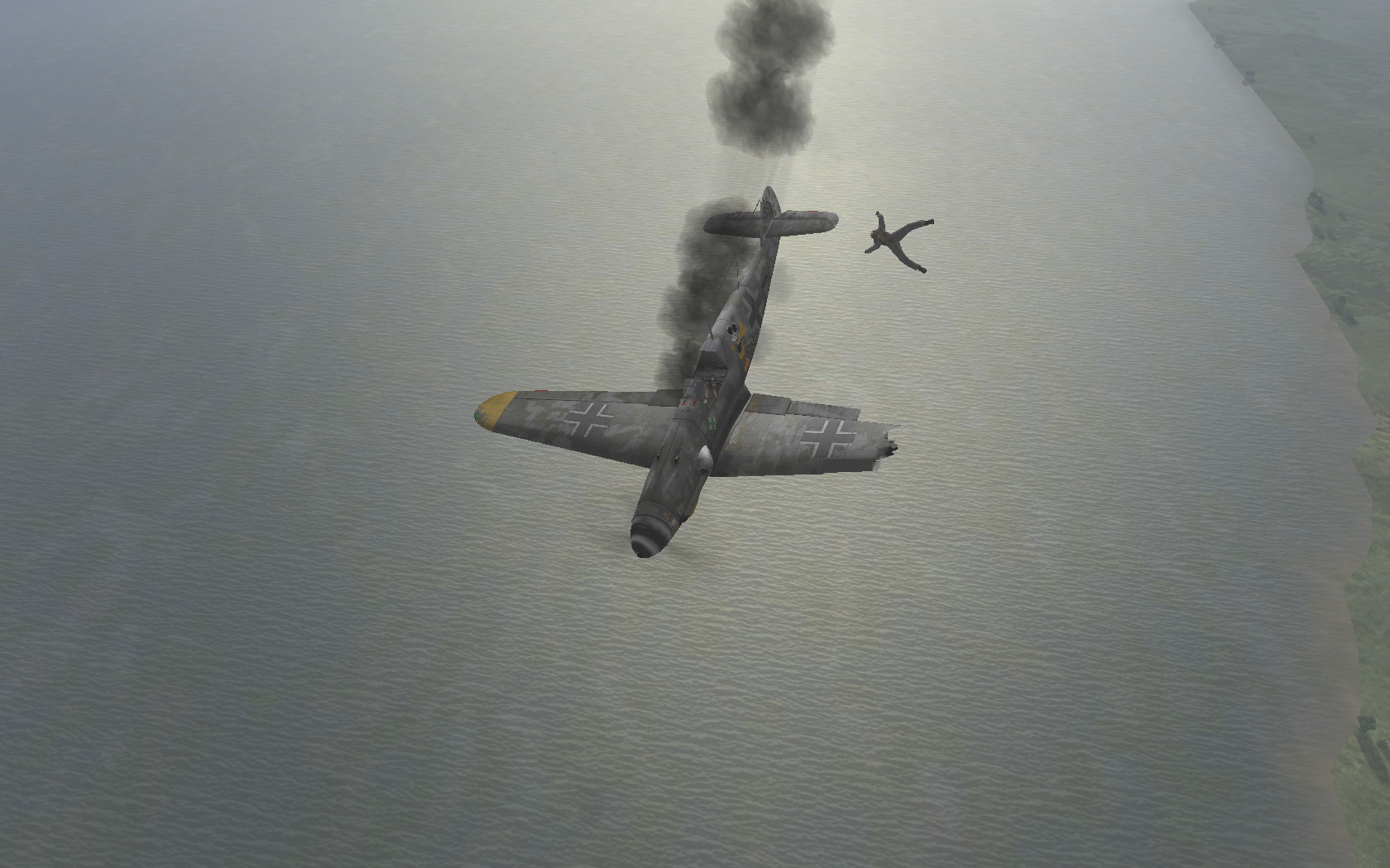 Очень злючий самолёт, ошибок не прощает. Но и мы не лыком шиты. Стал думать как эту заразу приземлить. В 4 вылете атаковал в лоб-неудачно, потом пилить её стал на пересекающихся курсах и вот она долгожданная победа. Знай наших