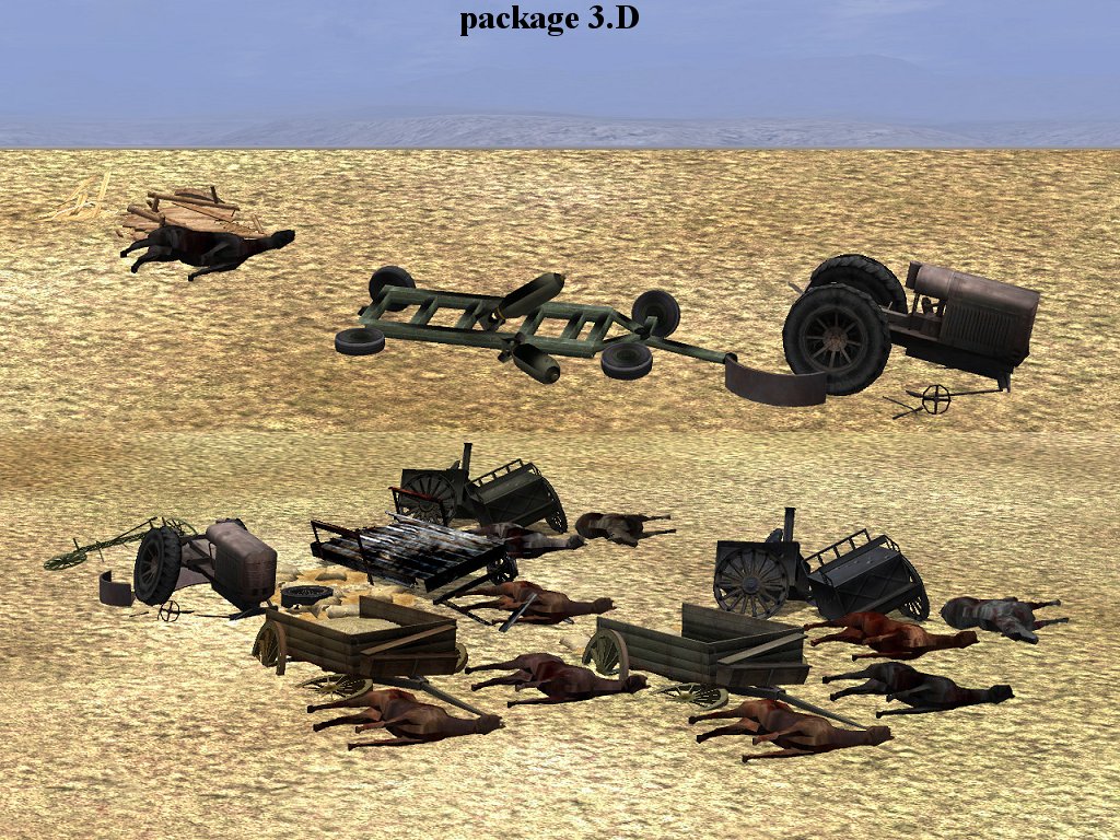 хоть кто то сделал повозки,кстати там и убитые лошади есть
