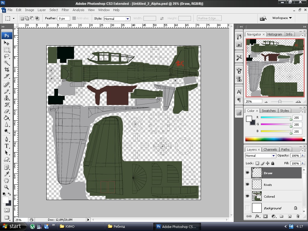 Люди, как мне правильно накинуть альфа-канал на текстуру модели? Чтобы фонарь просвечивался? Добавить как новый канал и в нем черным цветом рисовать окна?