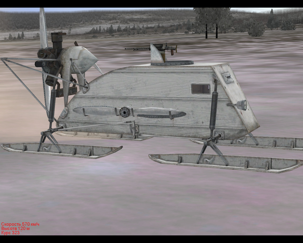 3D-модель не моя и к сожалению без тени! Используется пока слот от БА-64 - Зимний вариант... В модели предусмотренно вращение винта, но технически осуществить это я несумею, вот если кто-нибудь взялся бы написать классы - были бы у нас в ИЛе НАСТОЯЩИЕ Аэросани!