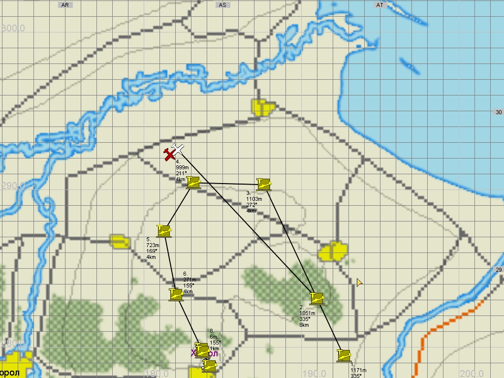 Но внезапно столкнулся с проблемой, понять и решить которую я сам не могу. Проблема заключается в том, что виртуальный самолет ТУ-16А (скачать его можно здесь: https://www.sas1946.com/main/index.p...c,60249.0.html ), по неизвестным мне причинам, упорно не желает в режиме автопилота садиться на назначенный ему аэродром. Для более детального исследования этой проблемы я сделал тестовую миссию (ее и ее скриншоты я здесь представляю) в которой пара ТУ-16 делает круг над аэродромом и должна произвести посадку на него (с большого левого круга). Никаких препятствий (горы, холмы, грунтовая ВПП и т.д.) для производства посадки этой пары нет. Пробовал менять остаток топлива у этой пары – от 100% до 10%. Пробовал менять мод. сборку – вместо ДГЕН ПАКа, использовал ДЖЕТ ЭРУ 1.5 (самолет ТУ-16А хорошо устанавливается и летает в обеих этих мод. сборках).