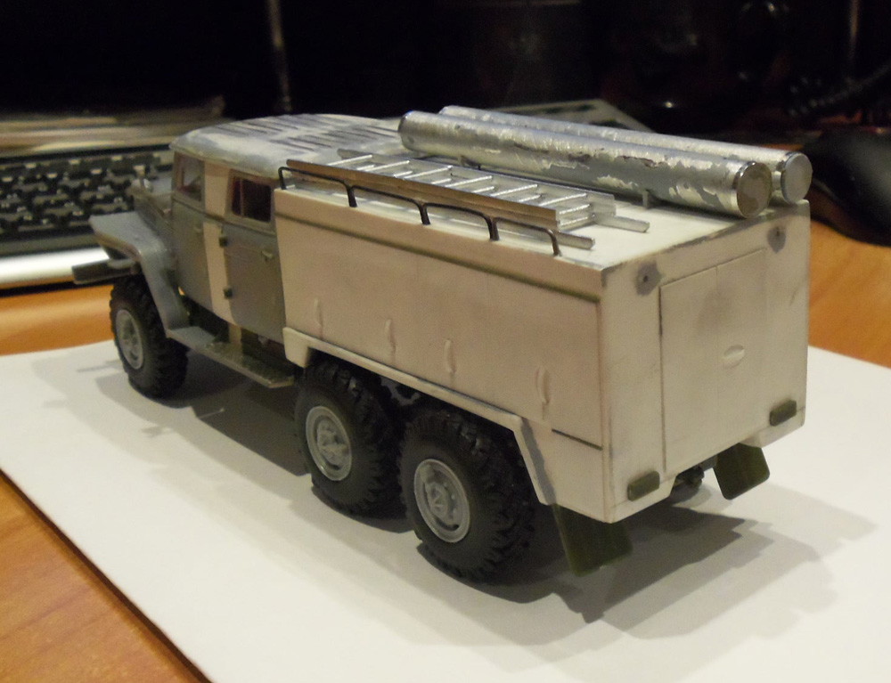 Пожарка на базе Урала-4320. за основу взял обломки трех Уралов от ИСМ (то, что дети не смогли собрать, а только угробили их) . модель делаю для музея школы . пожарники тоже от ИСМ, немного переделал их. Увы, на пожарку так и не смог найти нормальных чертежей, только фото и то они там все разные. Так что вышла сборная солянка.