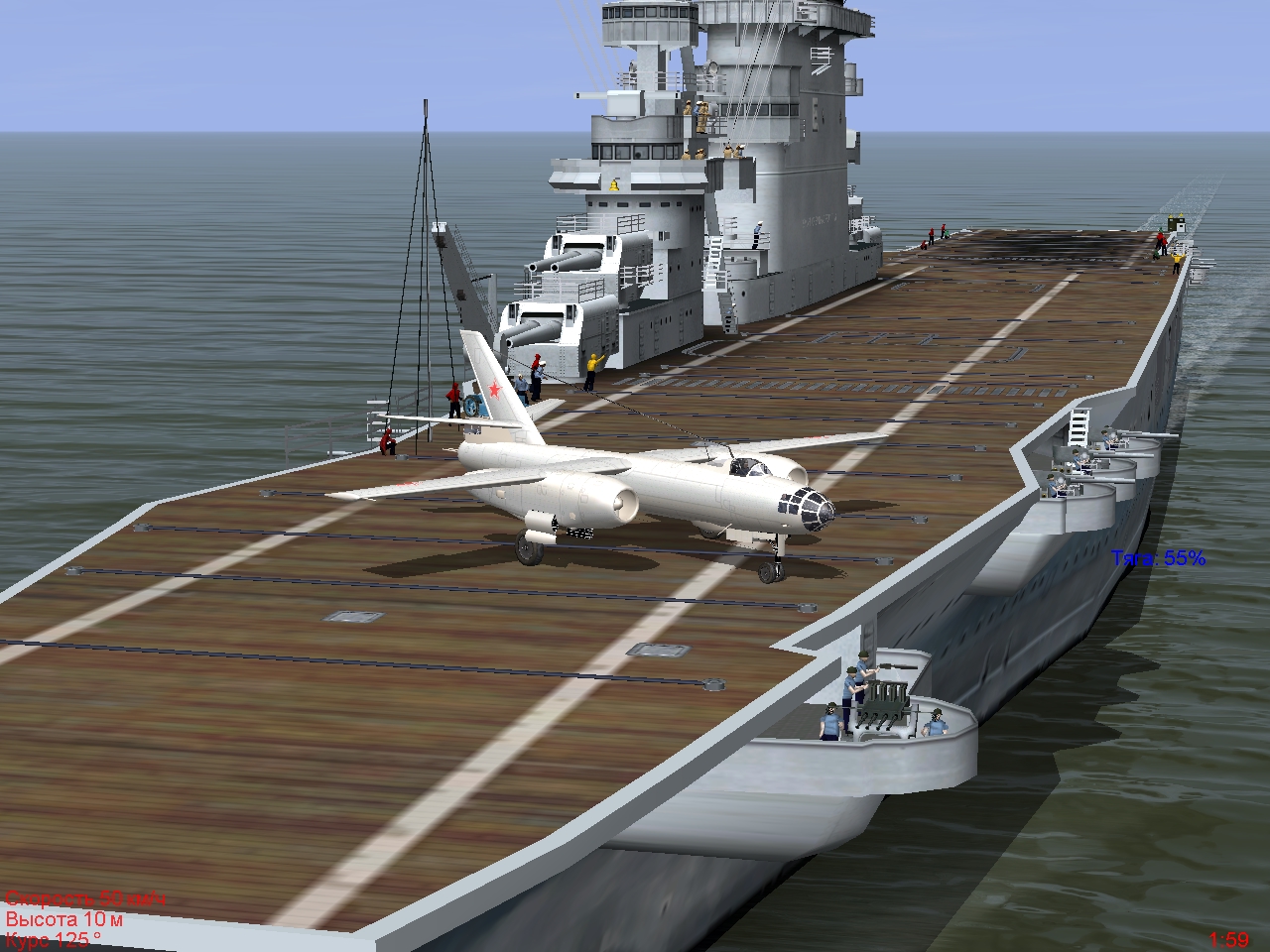 Но, ЕМНИП, реактивный бомбардировщик в "Иле" на палубу еще не сажали. В прицепе нередактированный трек ntrk с посадкой и взлетом Ил-28 на палубу/с палубы "Лексингтона". 4.13.2m + DGenPack 1.2. Спидбар использовал, т.к. в данном МОДе приборы в кабине пилота не работают, а за скоростью следить надо.