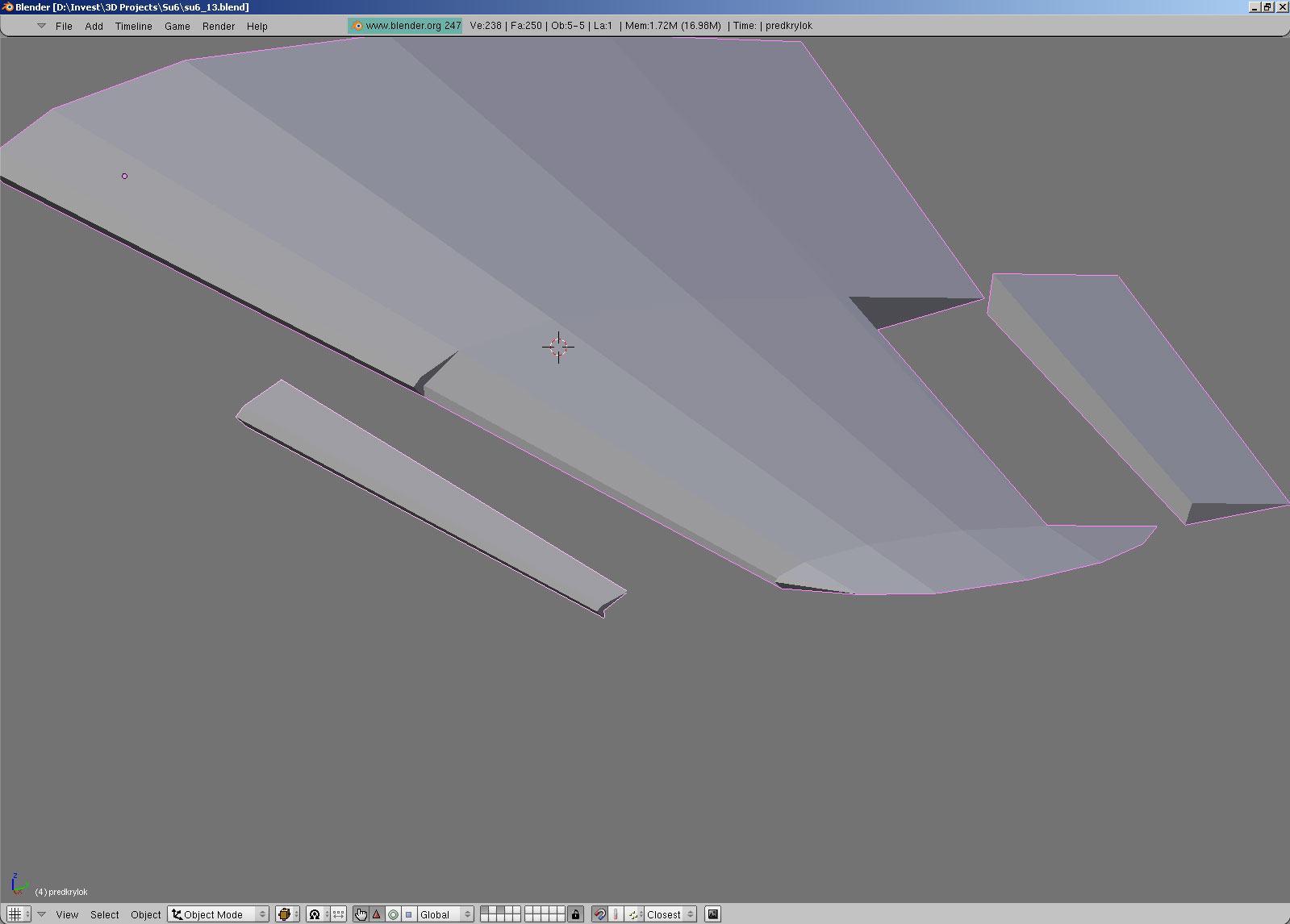 Вырезал закрылки, ниши для шасси, совместил крыло с фюзеляжем.