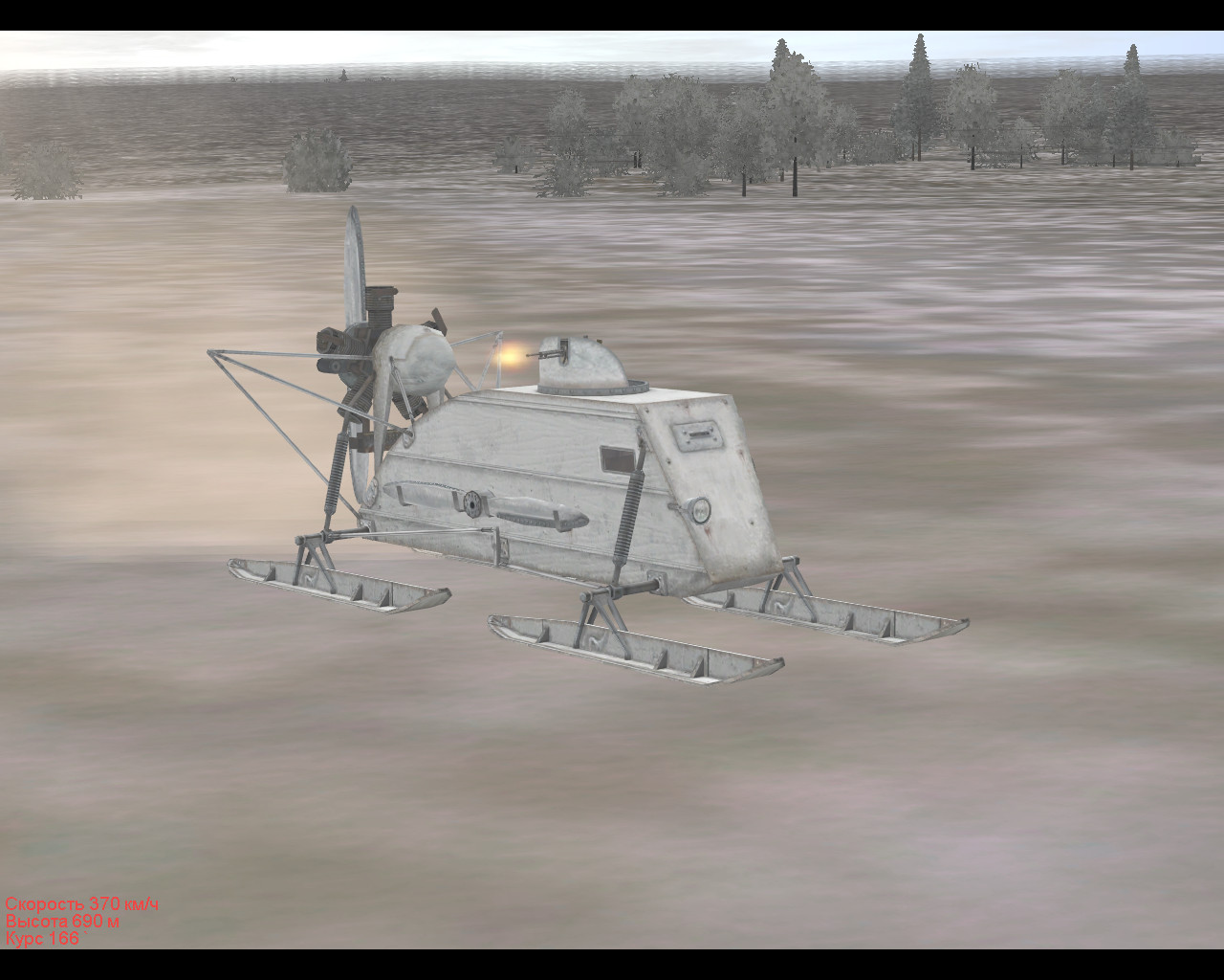3D-модель не моя и к сожалению без тени! Используется пока слот от БА-64 - Зимний вариант... В модели предусмотренно вращение винта, но технически осуществить это я несумею, вот если кто-нибудь взялся бы написать классы - были бы у нас в ИЛе НАСТОЯЩИЕ Аэросани!