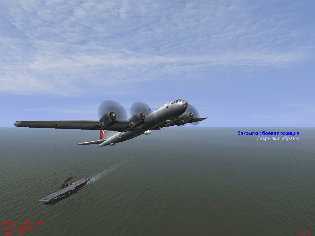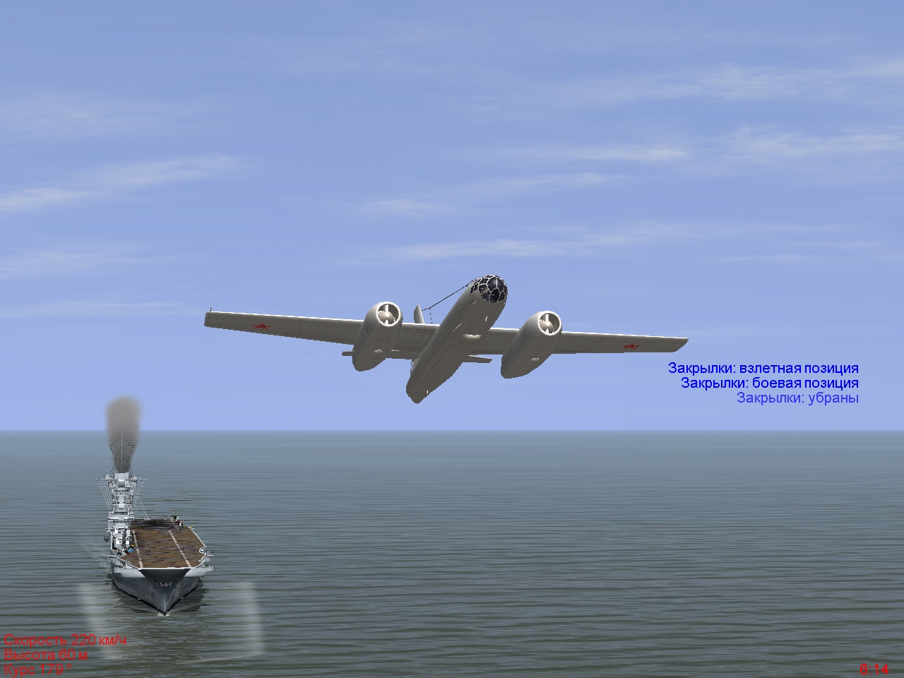 Но, ЕМНИП, реактивный бомбардировщик в "Иле" на палубу еще не сажали. В прицепе нередактированный трек ntrk с посадкой и взлетом Ил-28 на палубу/с палубы "Лексингтона". 4.13.2m + DGenPack 1.2. Спидбар использовал, т.к. в данном МОДе приборы в кабине пилота не работают, а за скоростью следить надо.