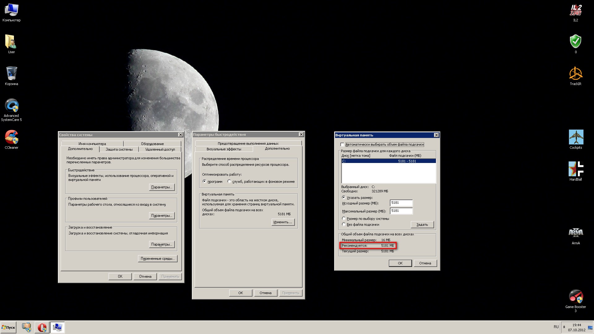 И вот там будет такая картинка, в зависимости от того сколько у тебя памяти. Число рекомендованной вносишь в поле "Указать размер" и Задать, ОК, и перезагруз. С уважением. Последний раз редактировалось FilMit; 07.10.2012 в 20:05. |