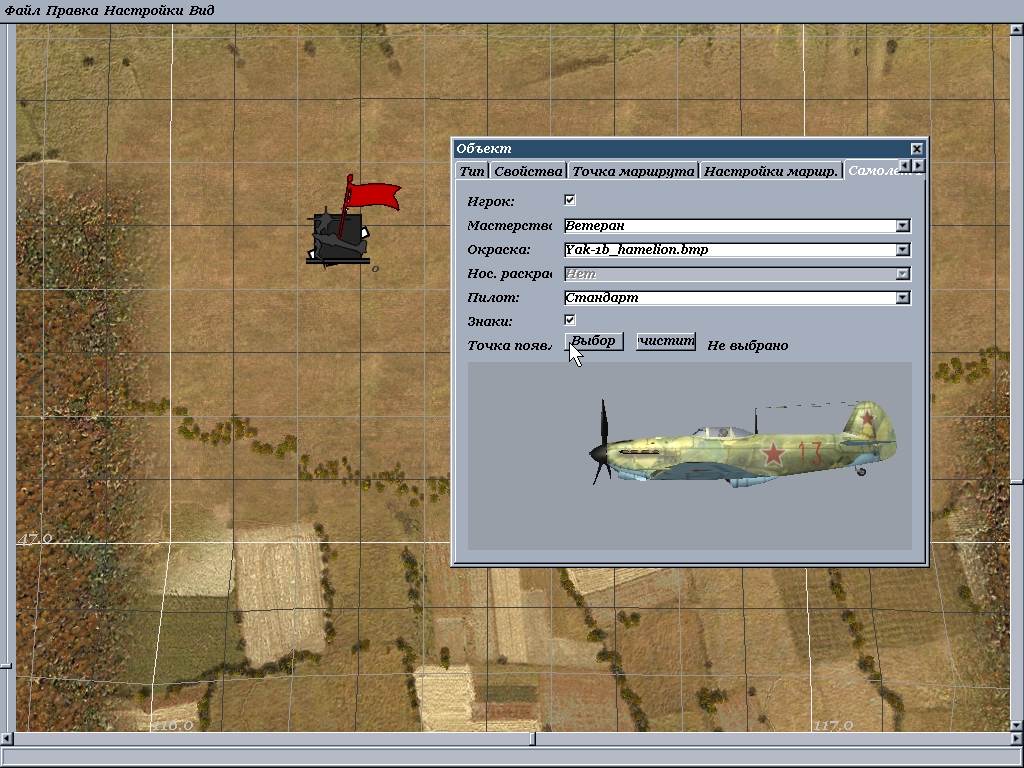 Достаточно просто поставить самолёт из раздела "Стационарные самолёты" и задать ему национальную принадлежность. В настройках карты "дата" можно менять год. В 4.13 в этом плане ничего не изменилось. Самолёт на полосу можно поставить (или не на полосу) только из раздела "Стационарные самолёты". Раздел просто "Самолёты" , это для подвижных самолётов и установки маршрута движения. Им можно задать взлёт с базы. Тогда они появятся в миссии уже прямо на полосе. Ещё можно их привязать к стационарному самолёту , и тогда игрок появится при старте миссии в стационарном самолёте , к которому было указано в полном редакторе. |