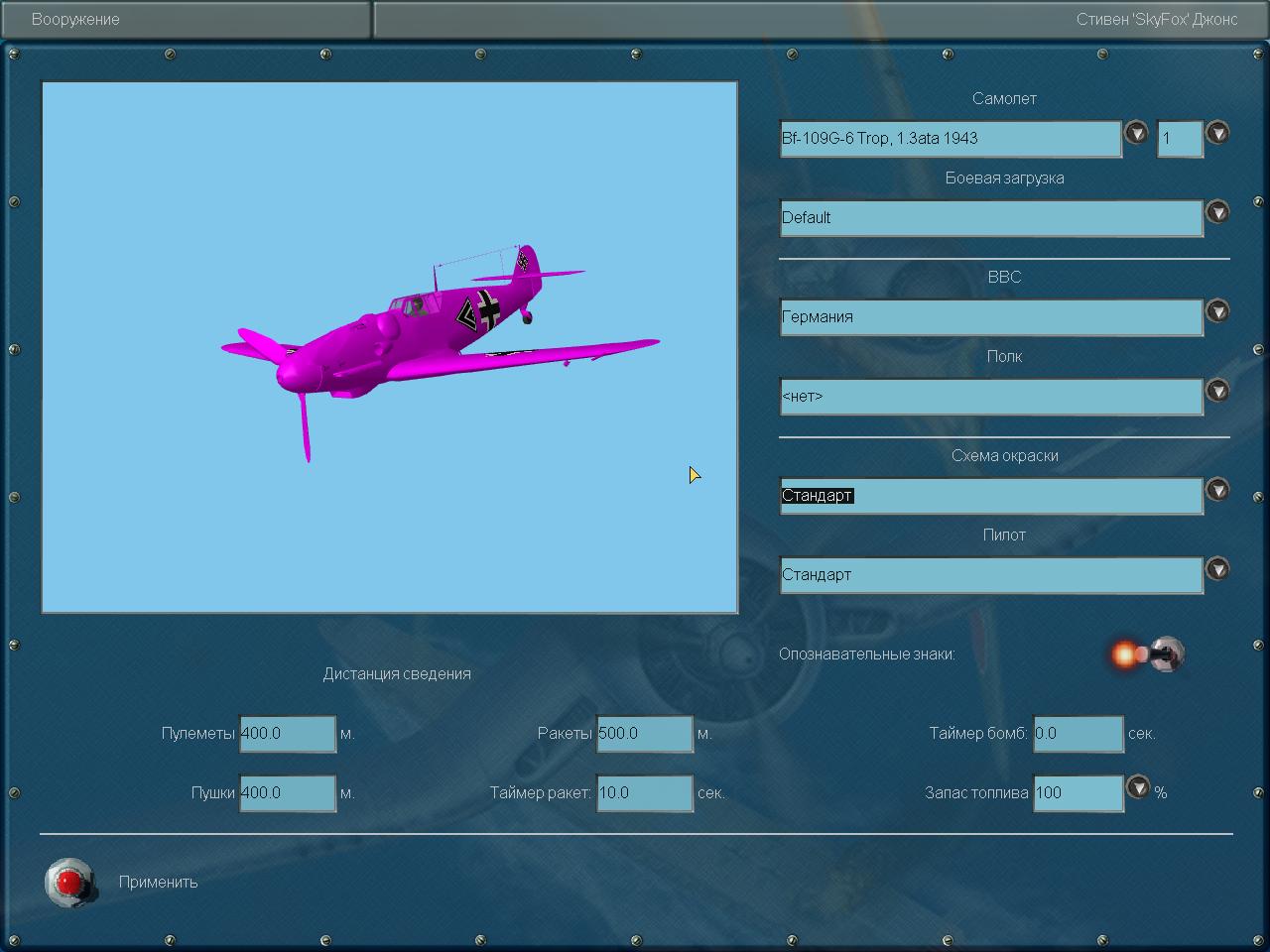 ![]() Теперь про ложку дёгтя. Некоторые крафты - Розовые!! А некоторые есть в списке самолётов, но их не показывает окно в выборе.Снёс все мессера установленые перед этим . И моды и из папки air.ini . Оставил только из мода Новый пак мессеров. Без изменений всё осталось. Снёс скины всех мессеров. Опять без изменений. В чём дело камрады? Никто с подобным не сталкивался? Буду рад помощи..