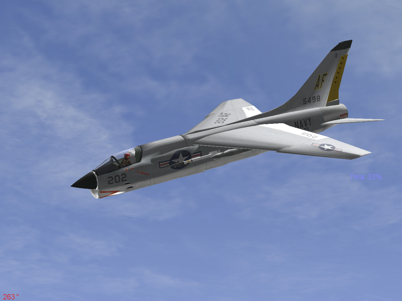 "Воут F-8 «Крусейдер» (Крестоносец; англ. Vought F-8 Crusader) — американский истребитель палубного базирования, единственный в истории авиации серийный самолёт с изменяемым в полёте углом установки крыла. Имеется в виду возможность изменять угол атаки крыла при неизменном положении фюзеляжа; это не крыло с переменной стреловидностью." Проверил в игре,конечно угол крыла не изменяется.При работе триммером меняется угол руля высоты.А можно работу триммера к крылу прикрутить? Вот так он в препарированном виде выглядит. |