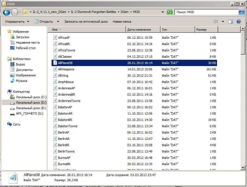 Если вы используете 4.11 - в файлы из папки MOD ничего добавлять не надо - там все уже есть. Достаточно просто добавить новый самолет в planes*.dat кампании или в нужный DB файл и все заработает.