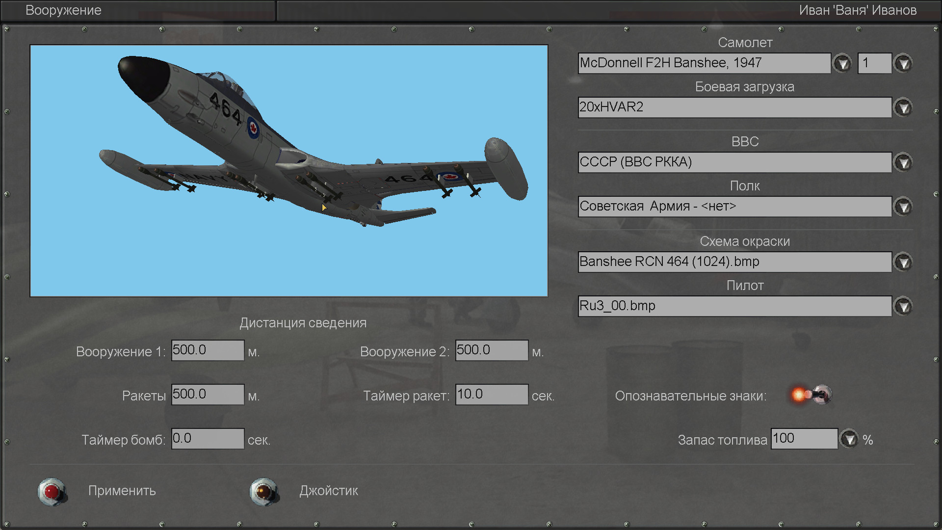 https://www.sas1946.com/main/index.p...89397.html#new обращаю ваше внимание что это совсем разные слоты, так что можете устанавливать обе версии самолетов, в принципе оба должны работать моя версия: Air.ini: Banshee air.Banshee 1 NOINFO gb01 SUMMER версия САС Air.ini: F2H-3 air.F2H_3 1 NOINFO gb01 SUMMER |