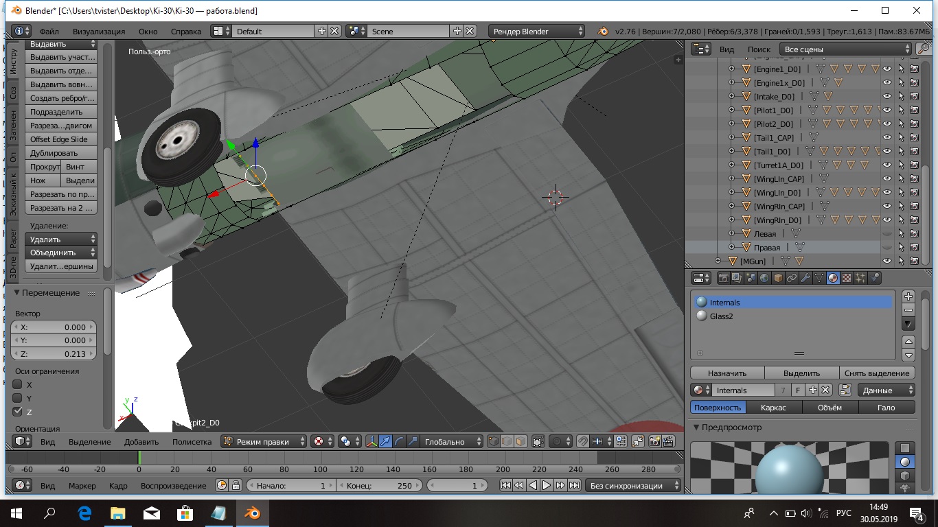 Колесо моего "разлива" весит 320 треугольников, крыльевой пулемет 80. Пулемет стрелка-наблюдателя выдернутый из Д3А1, весит 124 треугольника. "Нежным движением руки" модель полегчала на 7000 треугольников, и это в общем не предел. Есть мысли по поводу мотора, тоже весит явно избыточно, но есть кой какие задумки по поводу модели повреждений, так что пока мотор не трогаем. Последний раз редактировалось tvister; 01.06.2019 в 22:47. |
