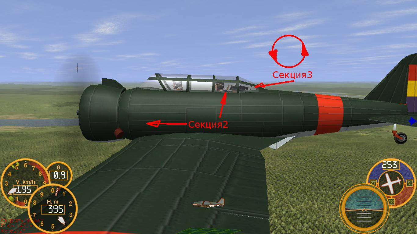 проблему, анимацию наблюдателя/стрелка/бомбардира. Требуется, в боевом положении сдвижные секции фонаря 2 и 3, должны сдвигаться назад, открывая пулемет и стрелка. Причем секция 3 должна двигаться быстрее секции 2 одновременно совершая угловое движение против часовой стрелки. При этом основание пулемета должно приподняться, выводя его на прицельную линию. Исторически этот механизм должен работать на многих одномоторниках с защитой задней полусферы. Это B5N, D3A, SBD, Ki-30, и многих других самолетах. Тем не менее в дефолтном исполнении игры, такого механизма нет. Наиболее полно он реализован на самолете Нортоп Гамма5 и Каваниси Е13. Однако и тут есть проблемы. На Гамме пулемет наводится, но не стреляет, на Е13 пулемет возникает из воздуха, что не есть правильно. У обоих самолетов нет управляемой игроком задней турели Ну и самое печальное, мне пока не удалось вставить нужные строки в код Ki-30. Код или не компилируется, или вылет игры, или секции фонаря появляются в игре перекошенными с неправильным направлением движения...